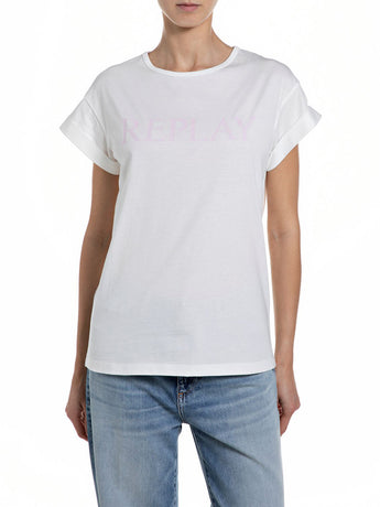 T-shirt in jersey con logo W3473B Replay da Donna - Bianco
