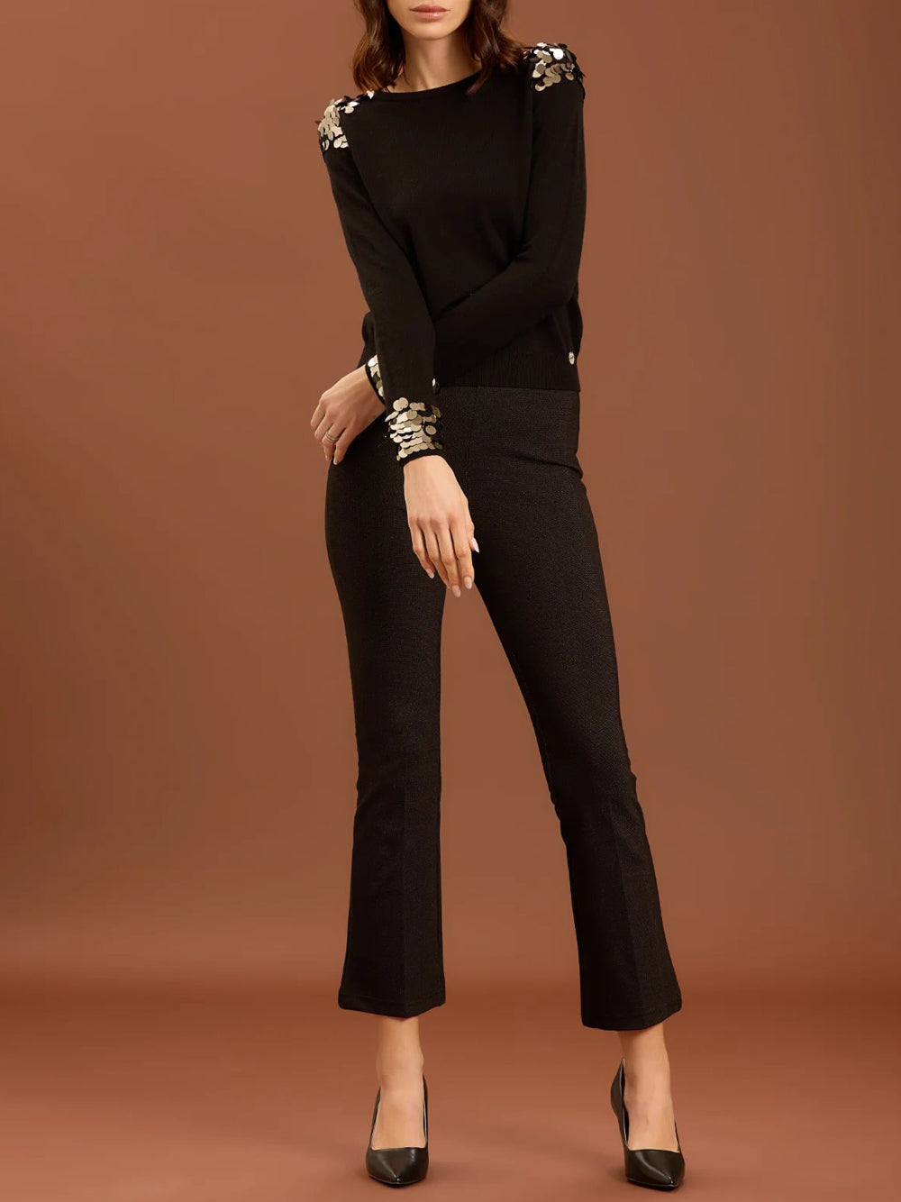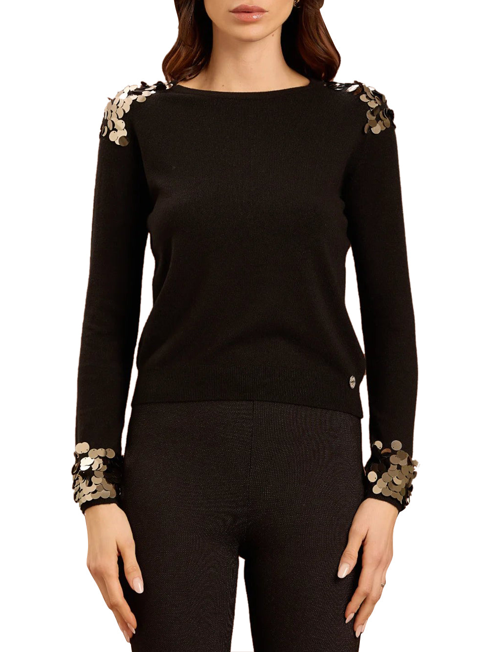 - Maglia girocollo con applicazioni su spalle e fondo manica