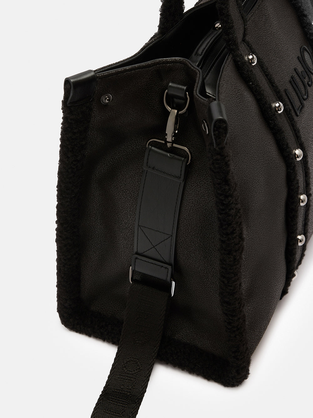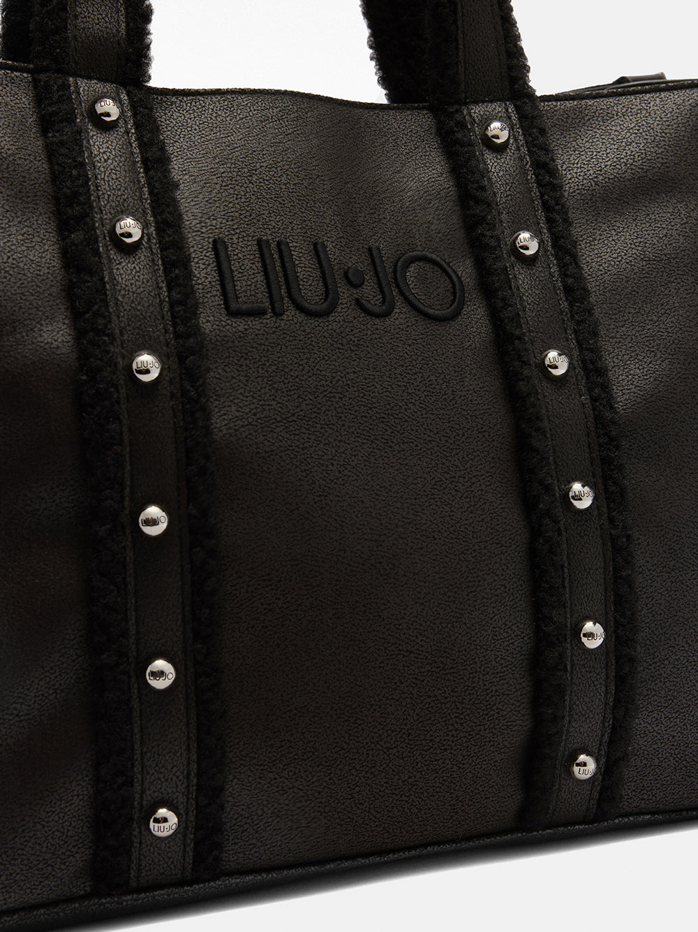 La borsa a mano da donna in tessuto spalmato effetto montone firmata Liu Jo è l'accessorio perfetto per la donna moderna e alla moda. Con dettagli in teddy, logo ricamato e borchie applicate, questa shopping bag di colore nero è pratica e versatile. Dotata di comodi manici e tracolla regolabile e rimovibile, offre spazio interno con tasca con zip. Ideale per un look casual-chic, da portare a mano o a tracolla.
