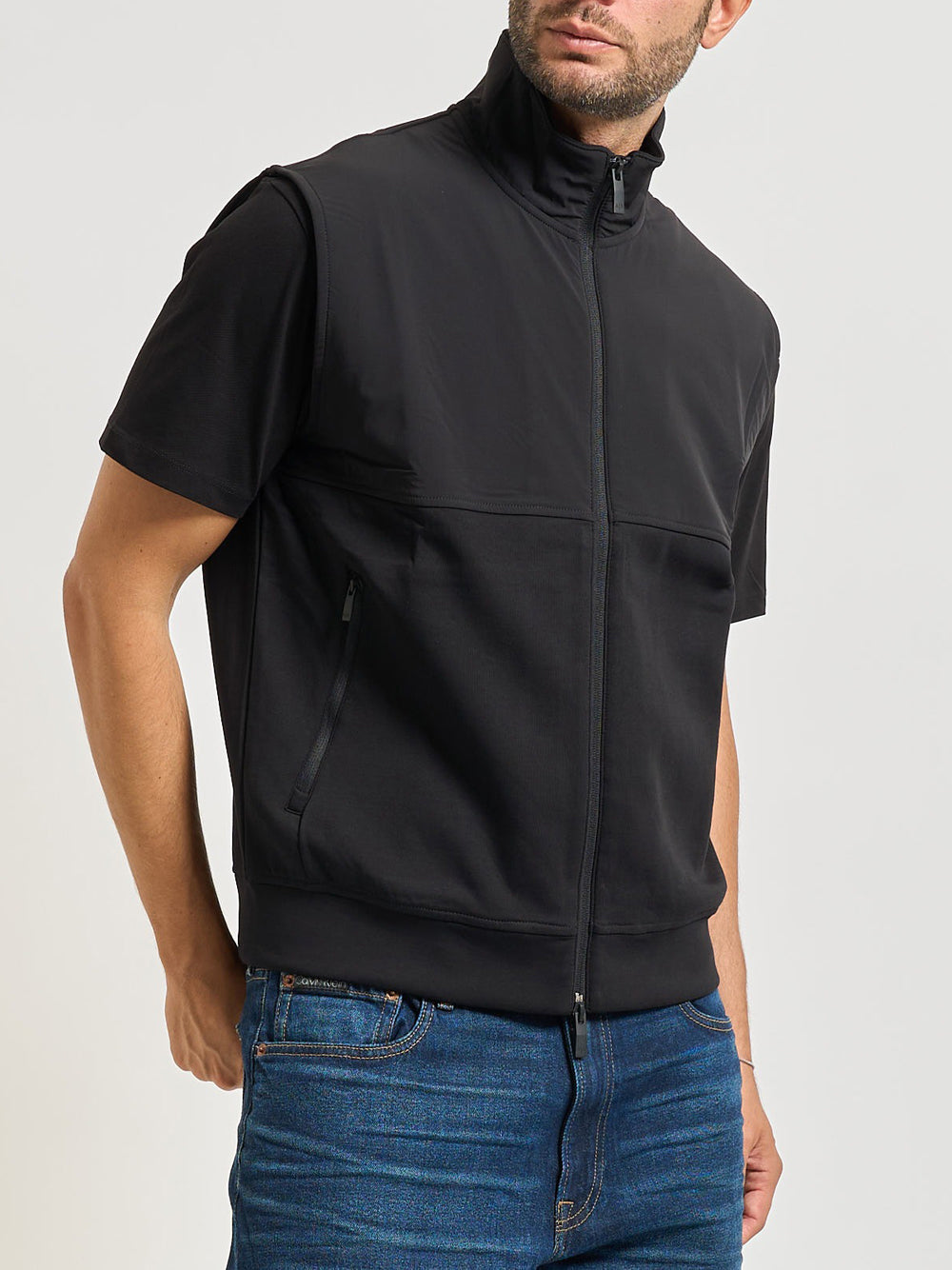 Smanicato da Uomo Armani Exchange è realizzato in misto cotone stretch e tessuto tecnico, perfetto per aggiungere uno stile contemporaneo ai tuoi look. Con chiusura frontale e tasche laterali con zip, presenta un design color block con parte superiore e collo in tessuto a contrasto. Ideale per le mezze stagioni, completando outfit sia casual che più strutturati.