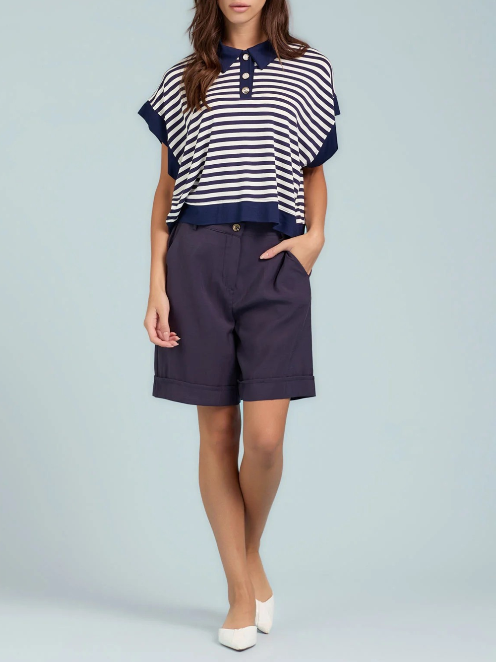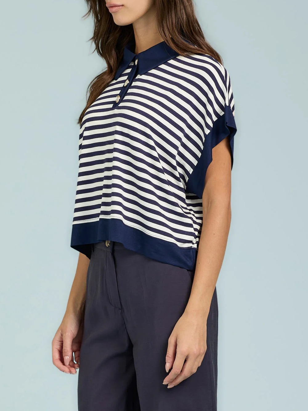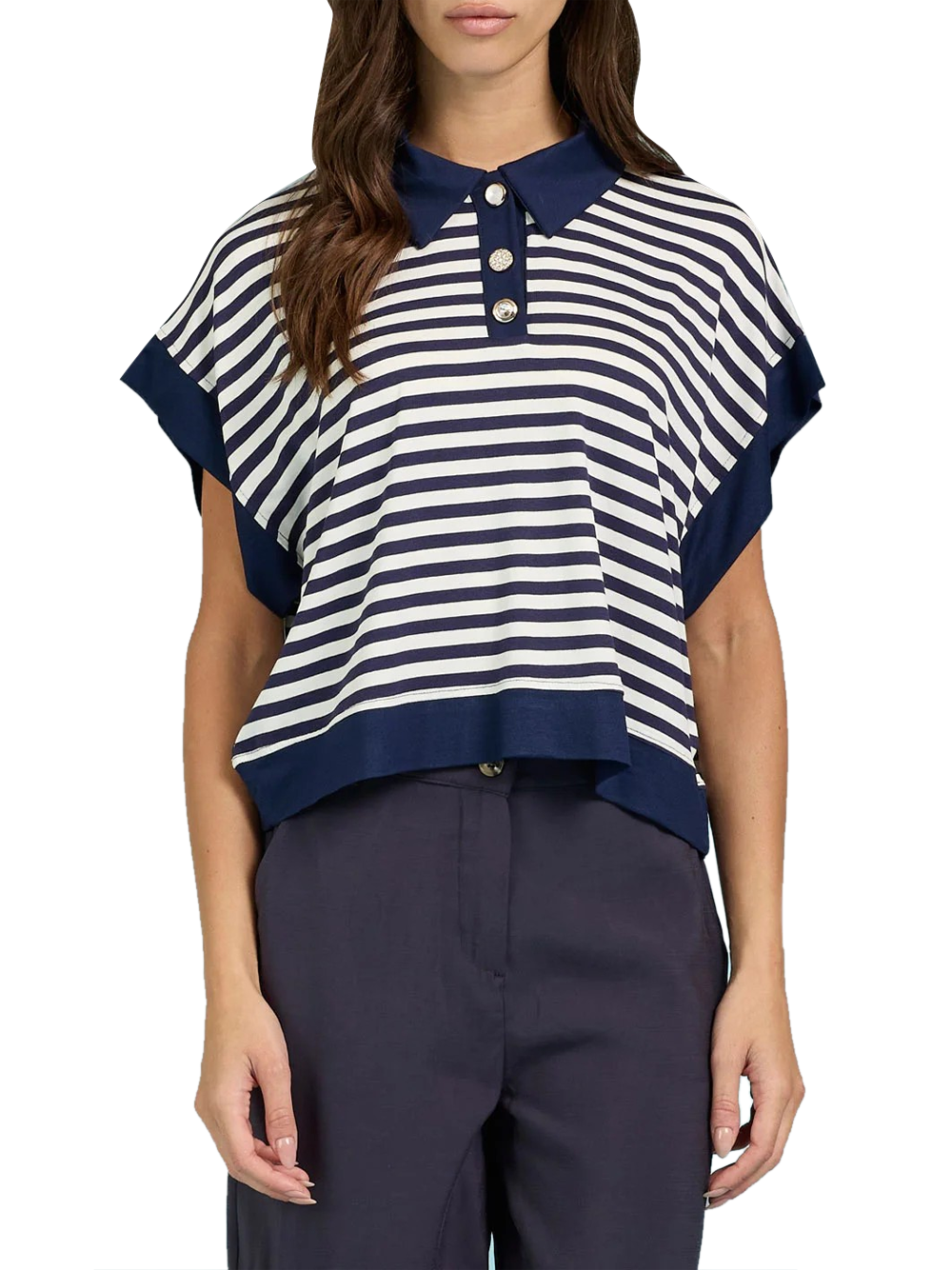 - Polo Over con riga e bottoni gioiello