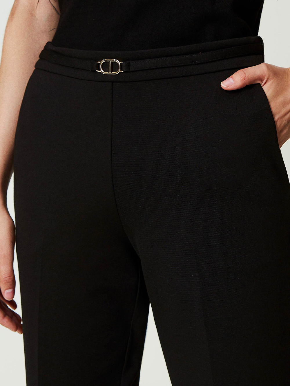 Pantalone Chino Twin Set Con Cinturino da Donna - Nero