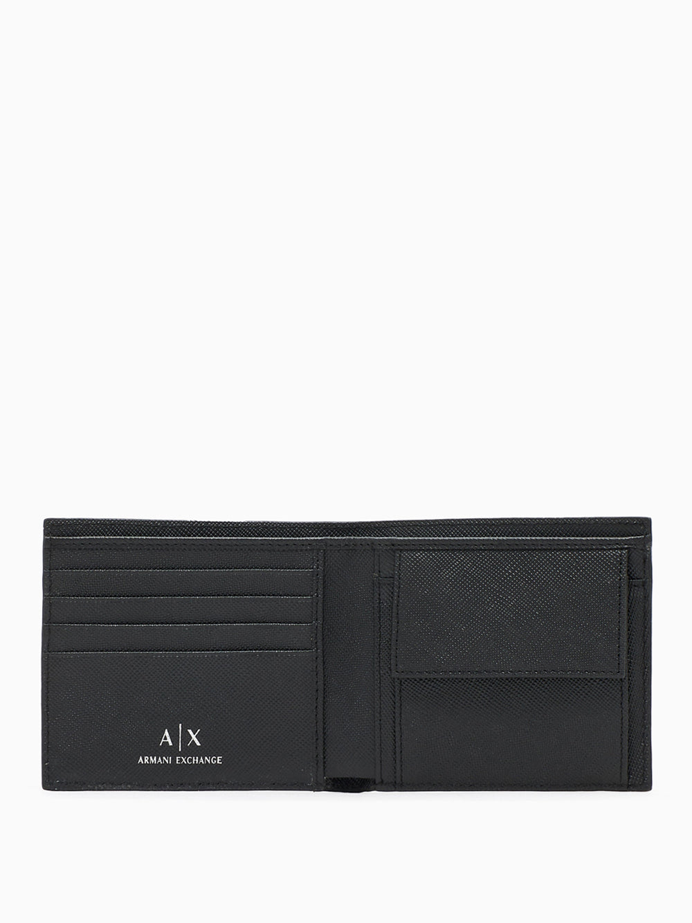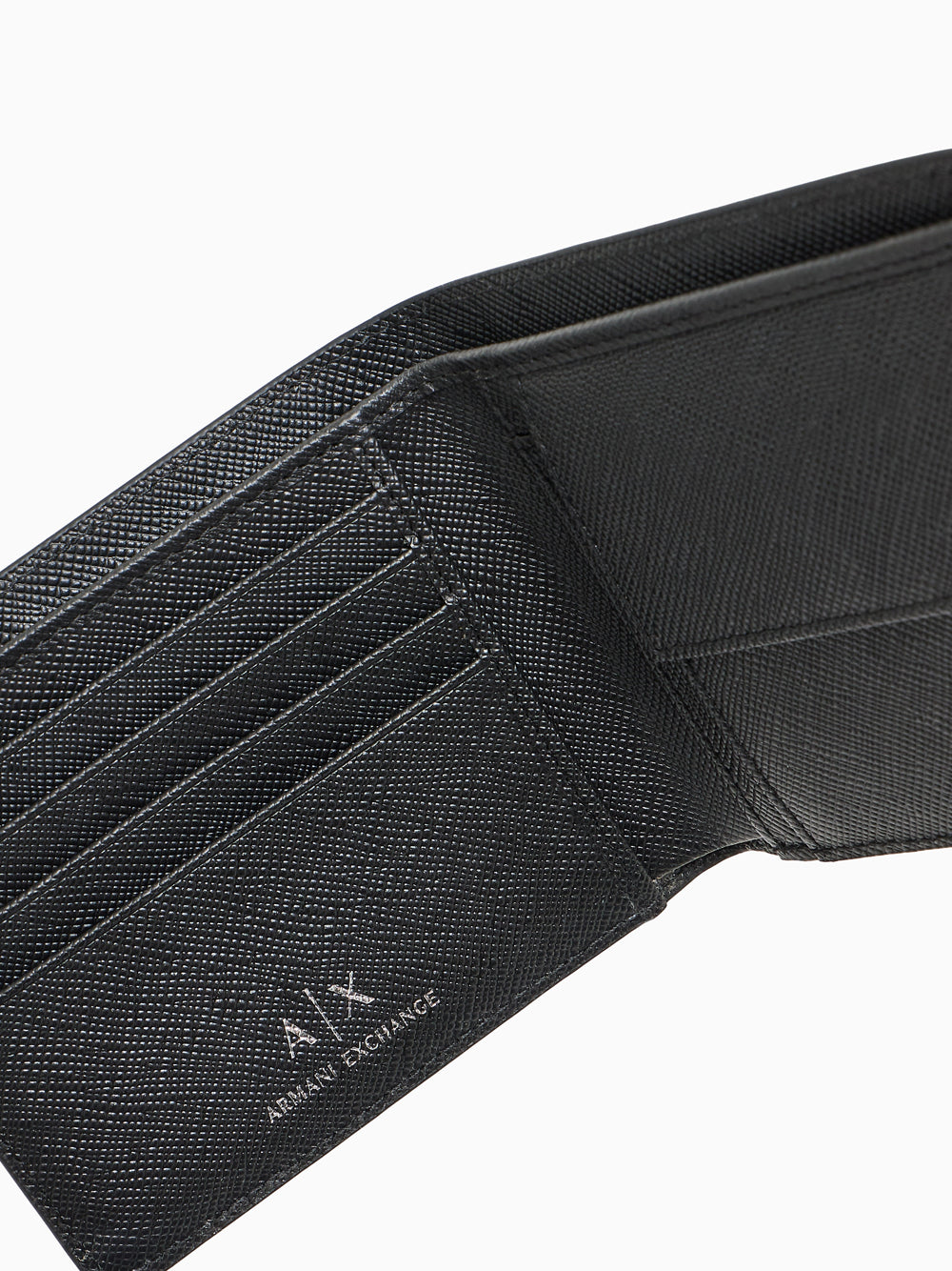 Il portafoglio da uomo Armani Exchange in pelle nera è l'accessorio perfetto per l'uomo elegante e sofisticato. Realizzato al 100% in pelle bovina di alta qualità, con fodera in poliestere, garantisce durata e stile senza tempo. Ideale per l'uomo moderno che cerca un accessorio di classe per completare il proprio look.