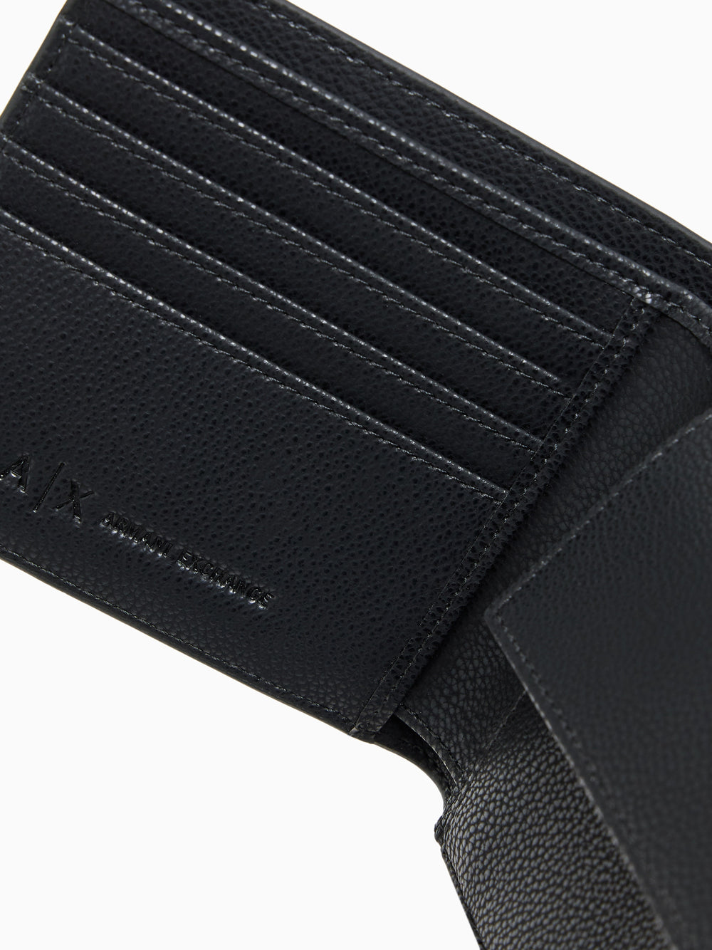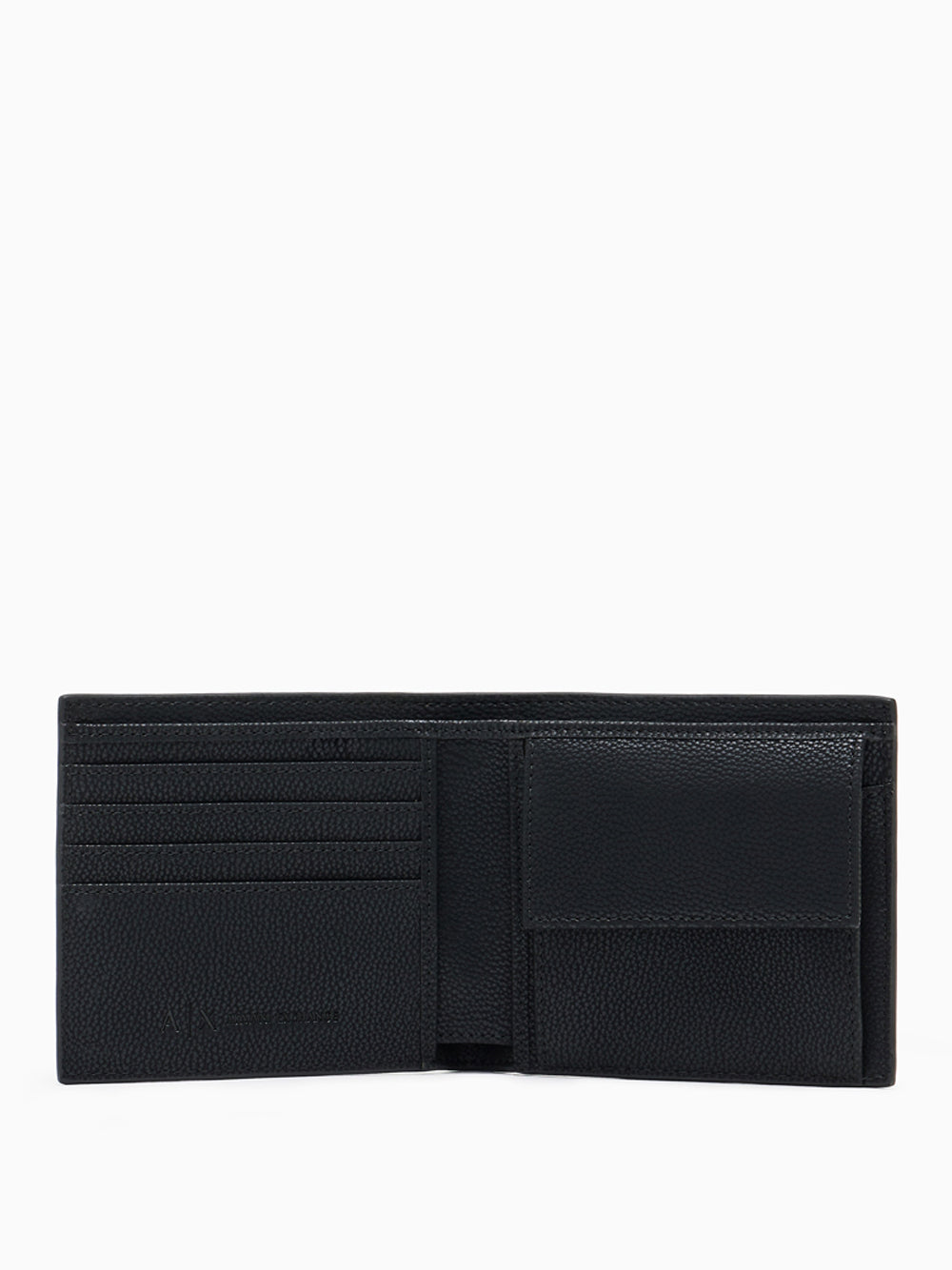 Il portafoglio da uomo Armani Exchange in nero è realizzato in materiale resistente, con tasca per monete, scomparto per banconote e fessure per carte. Un accessorio essenziale per l'uomo moderno, che unisce stile e funzionalità in un unico prodotto di alta qualità.