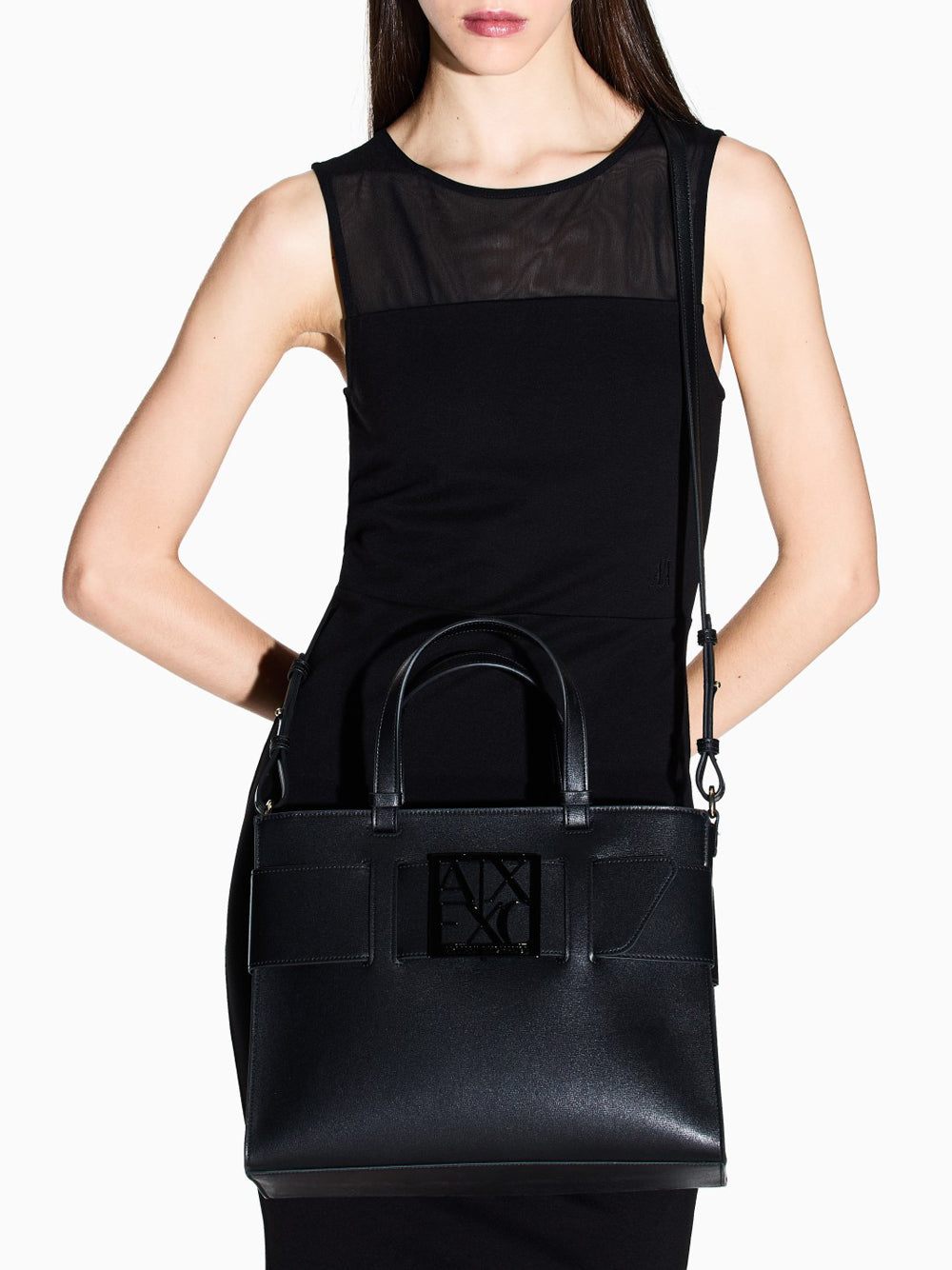 Borsa Tote Grande con doppi manici e tracolla Armani Exchange da Donna - Nero