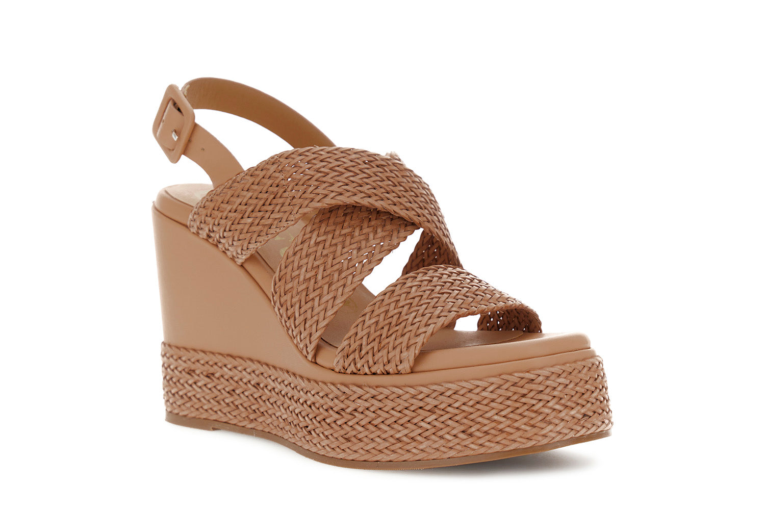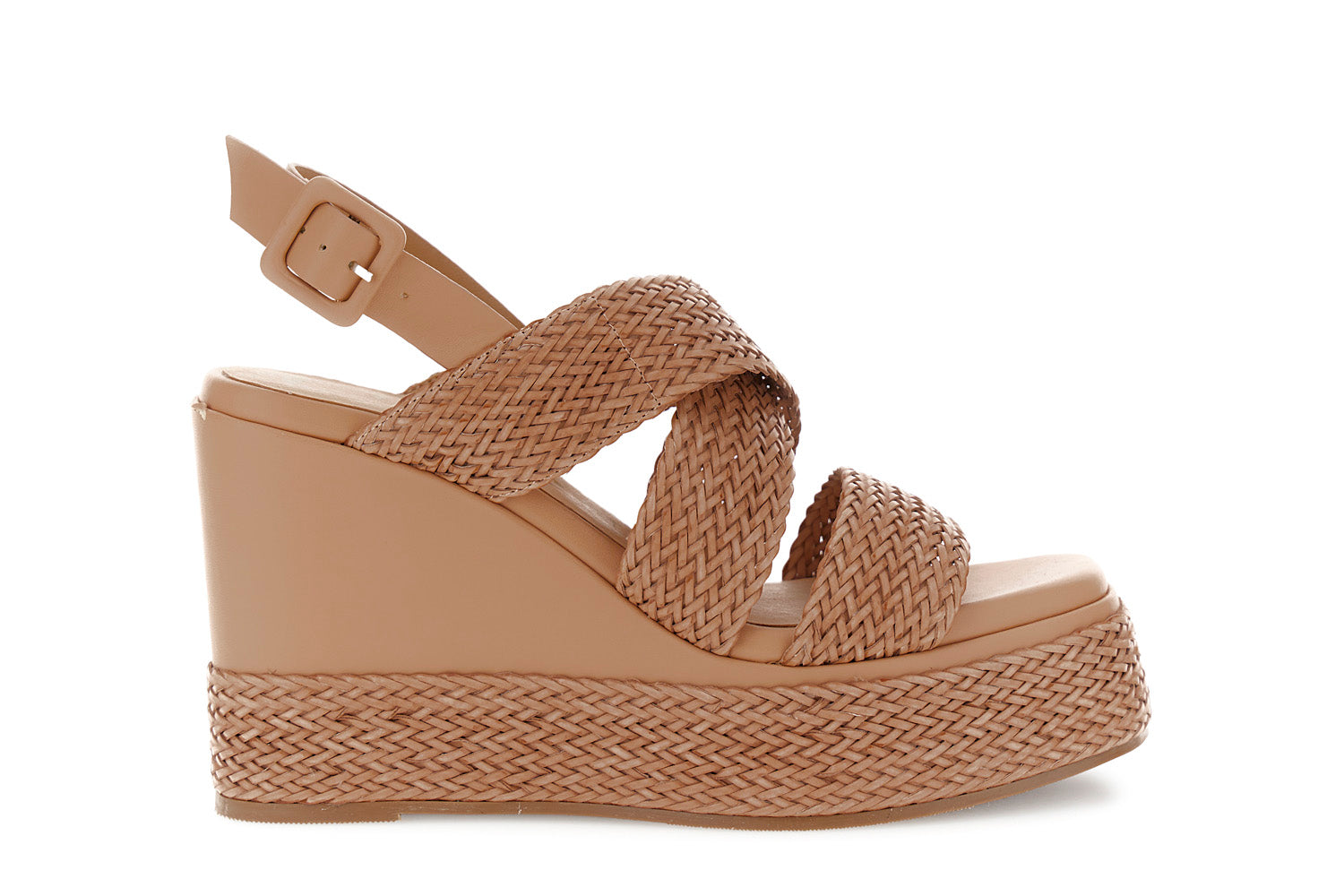 Sandalo Con Incrocio Su Zeppa Effetto Pelle Intrecciata CafèNoir - Cuoio