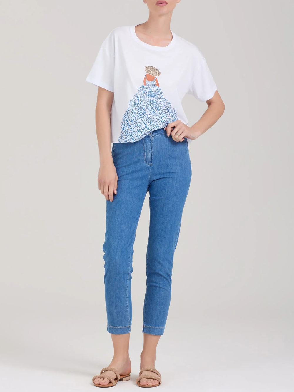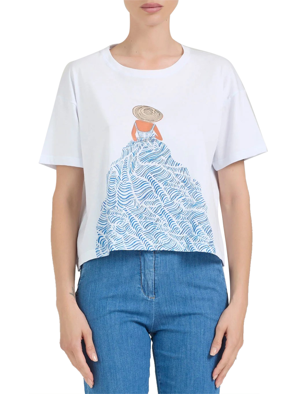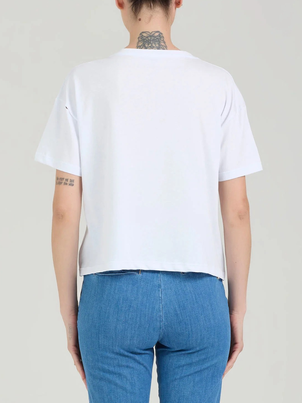 Progettata per la donna moderna, questa T-shirt si distingue per il suo design raffinato e la qualità dei materiali utilizzati. Con la sua tonalità bianca, rappresenta un elemento essenziale per il tuo guardaroba, offrendo stile e comodità in ogni occasione.