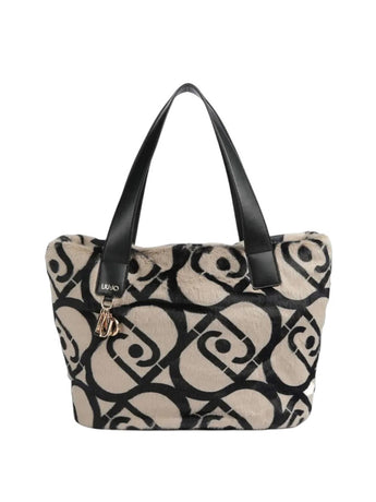 Borsa Shopper Liu Jo da Donna - Beige Nero, un'accessorio di classe per la donna moderna. Realizzata in pelliccia sintetica di alta qualità, questa shopping bag presenta comodi manici e una pratica tasca interna con zip. Il dettaglio del charm logato in metallo aggiunge un tocco di eleganza. Perfetta per la donna che ama uno stile sofisticato e alla moda.