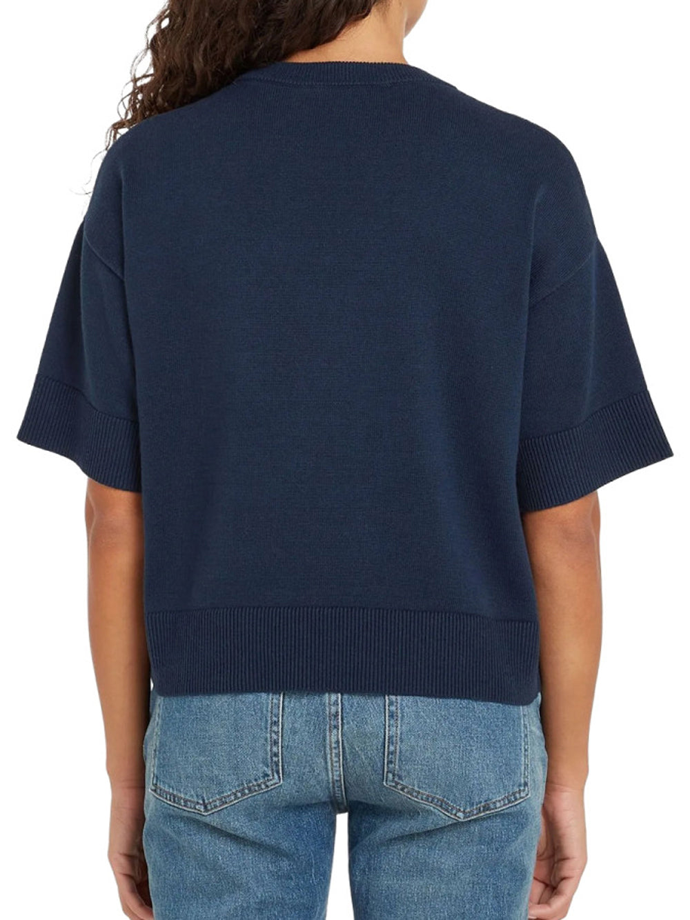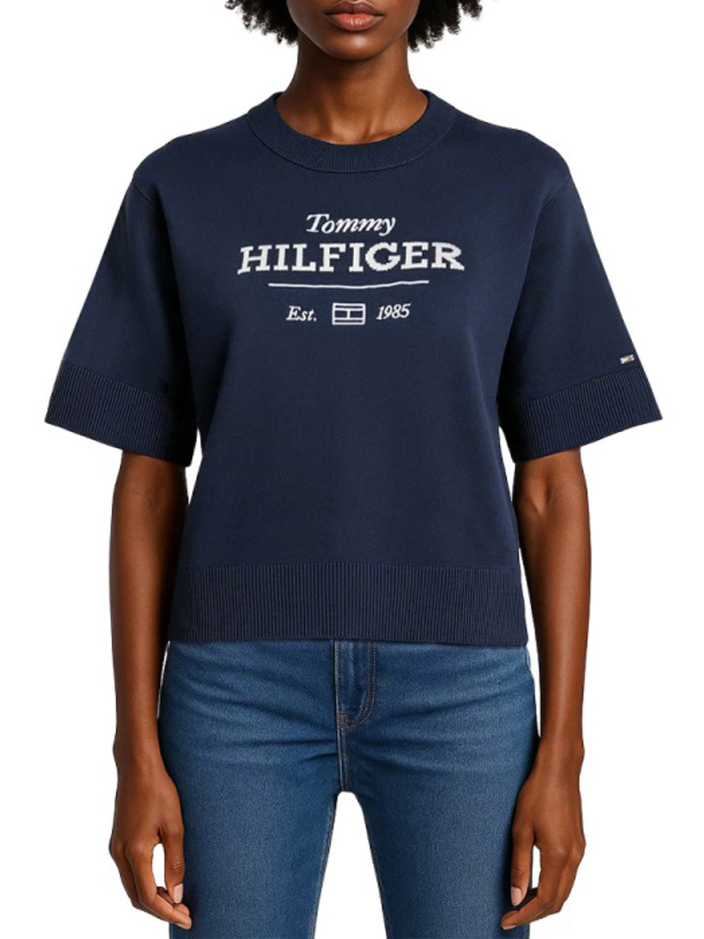 Scopri la maglia da donna Tommy Hilfiger di colore blu, un capo essenziale per chi ama l'outfit casual e quotidiano. Con un girocollo e maniche corte, questa maglia si distingue per la sua linea essenziale e silhouette regolare, rendendola perfetta per abbinamenti con jeans, pantaloni o gonne.