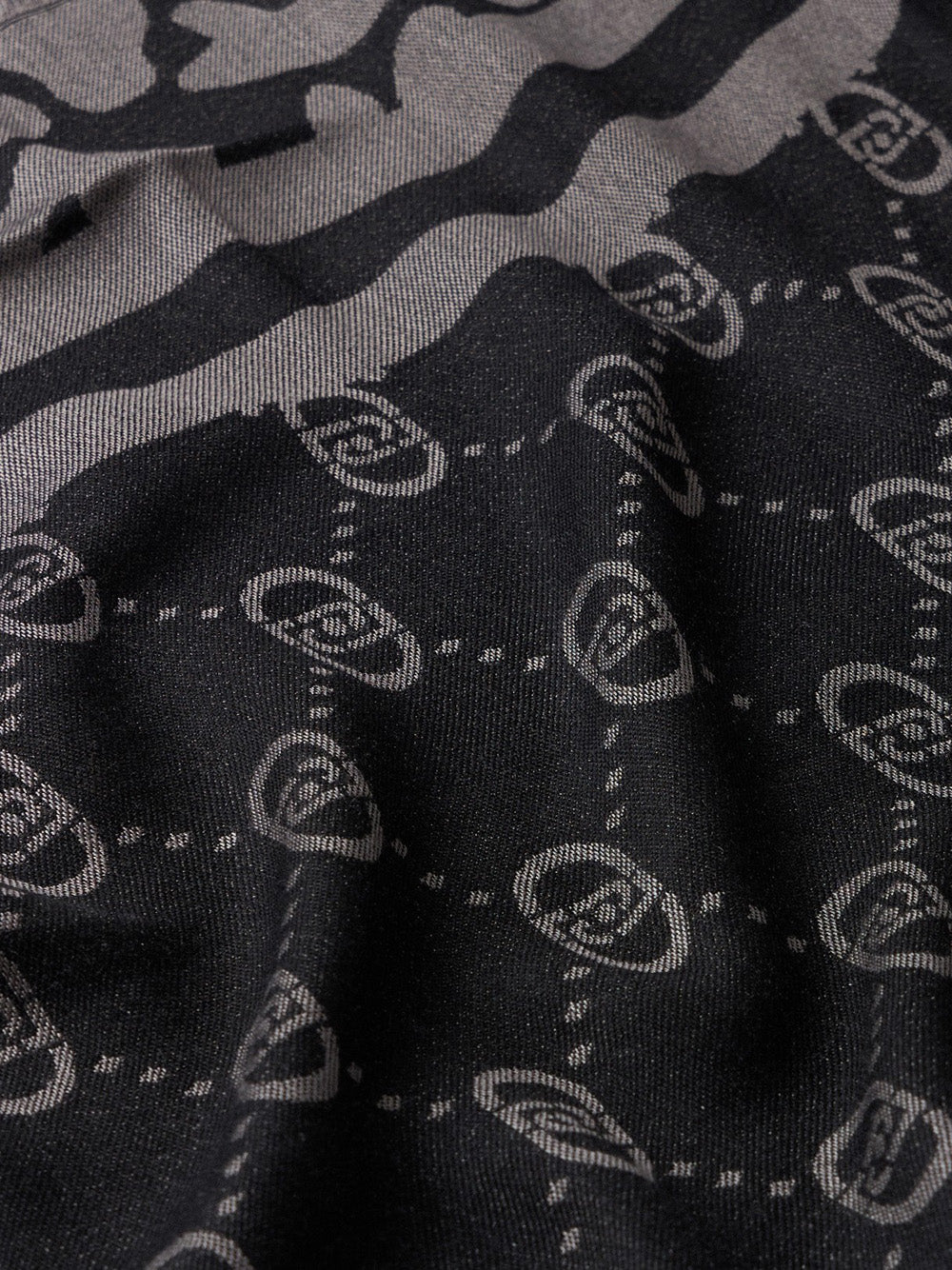 La stola nera da donna Liu Jo è realizzata in viscosa e lurex® per un look elegante e sofisticato. Il logo monogram jacquard aggiunge un tocco di stile distintivo, mentre i bordi sfrangiati conferiscono un tocco di femminilità. Perfetta per completare qualsiasi outfit in modo raffinato e alla moda.