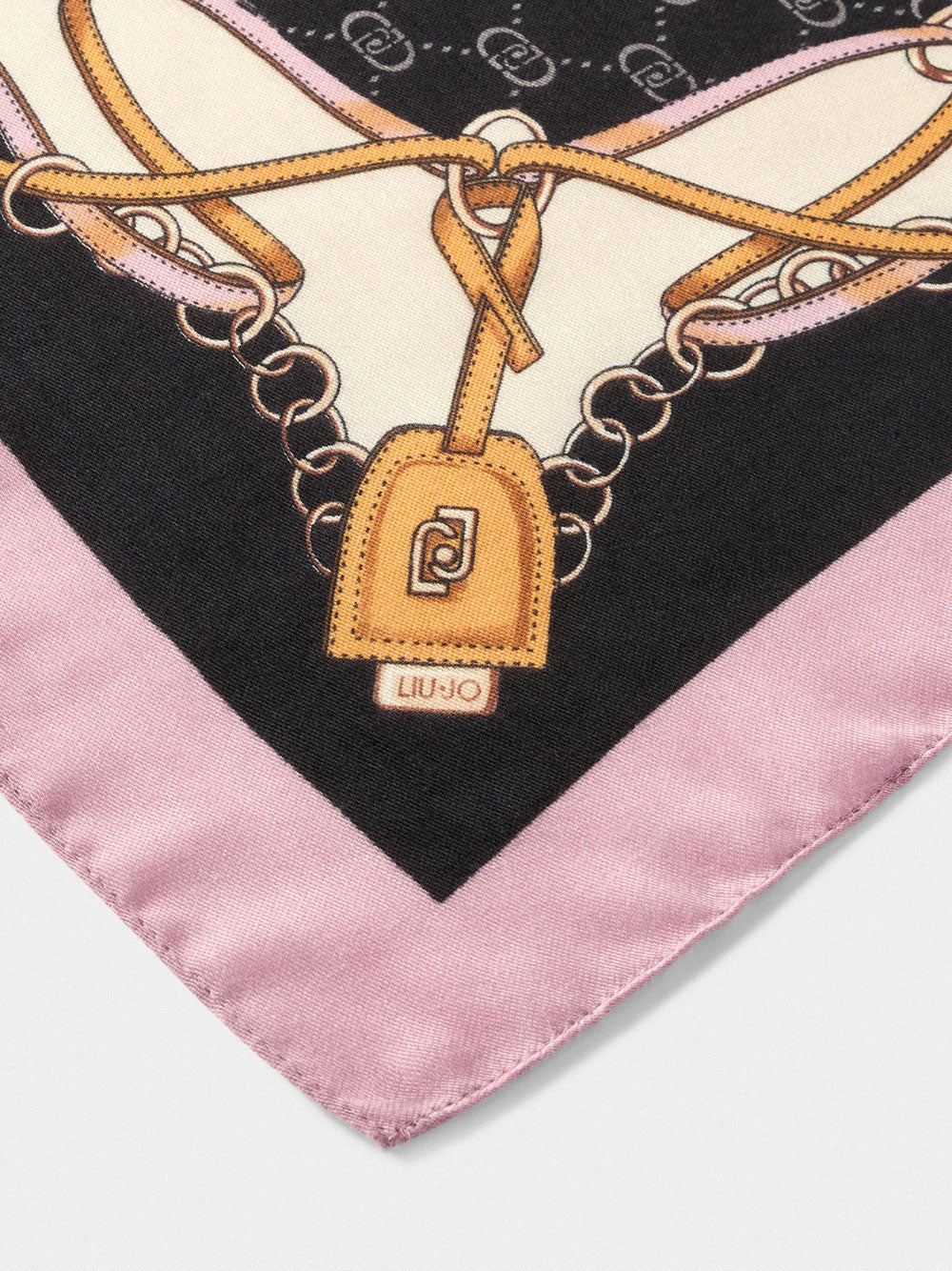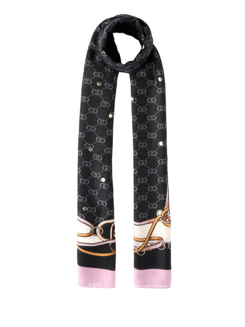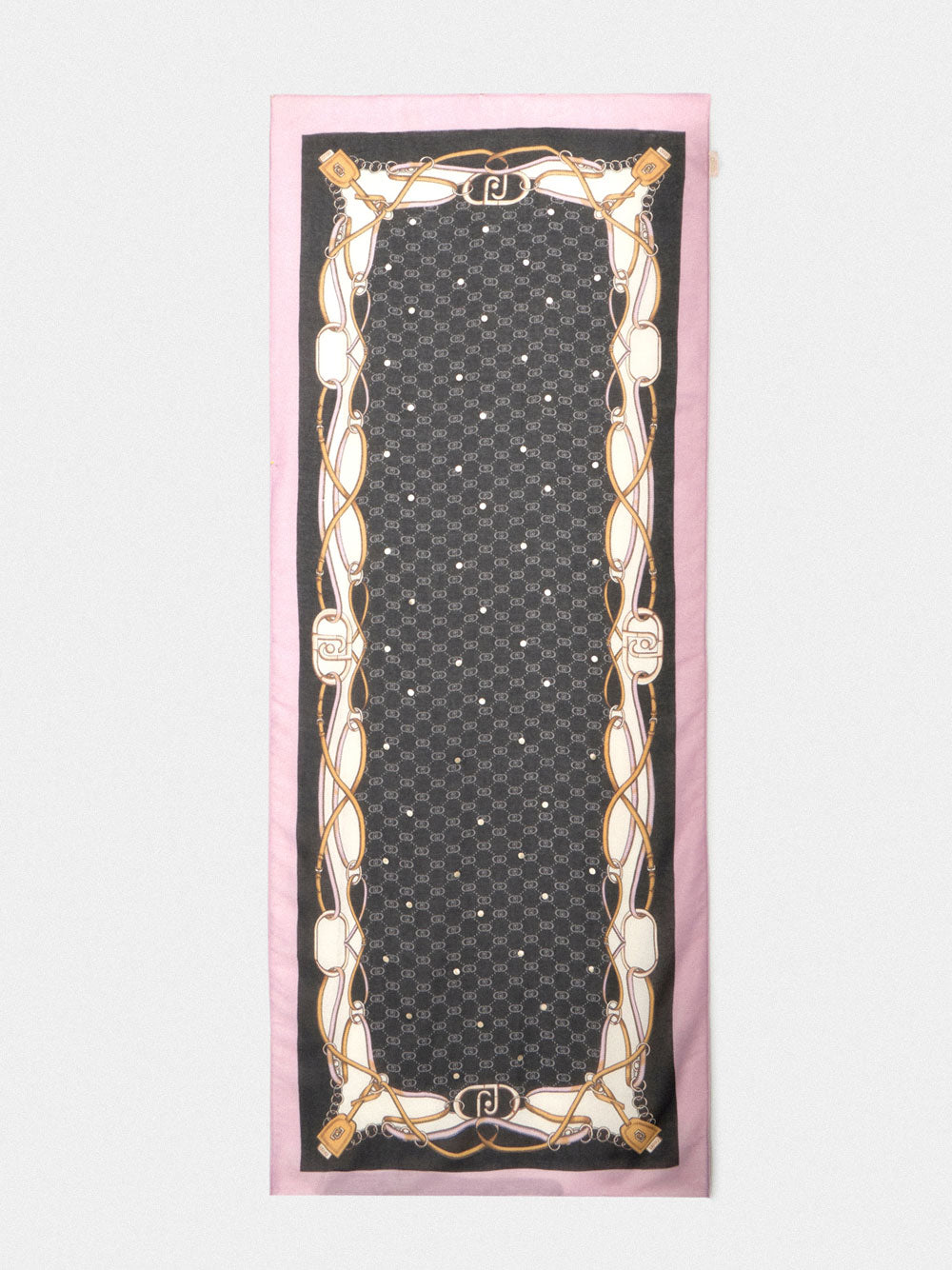 La stola nera da donna di Liu Jo è un accessorio di tendenza per completare il tuo look con stile. Realizzata con stampa grafica e logo distintivo, questa stola è elegante e versatile. Con una pratica pochette logata inclusa, è perfetta per un look sofisticato e alla moda.