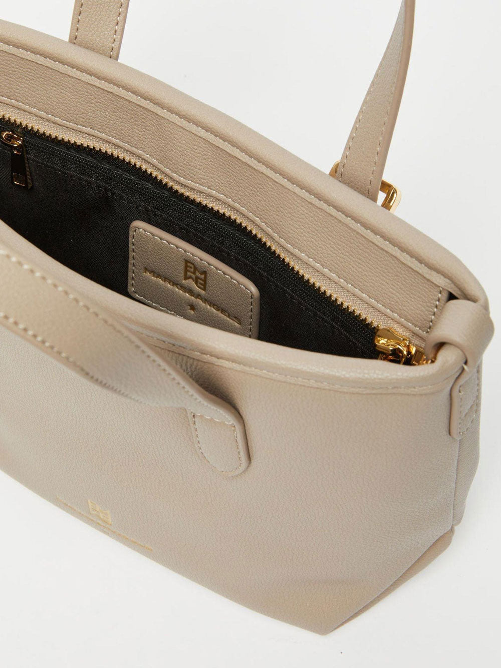 La borsa a mano Emme Marella Miniemma è perfetta per la donna moderna e alla moda. Realizzata in tessuto spalmato Avorio con finish martellato, presenta una chiusura con zip dorata e manici regolabili con fibbia dorata. Il modello foderato con tasca zippata è caratterizzato da una tracolla rimovibile e regolabile in lunghezza e un elegante logo dorato. Ideale per chi cerca stile e funzionalità in un unico accessorio.