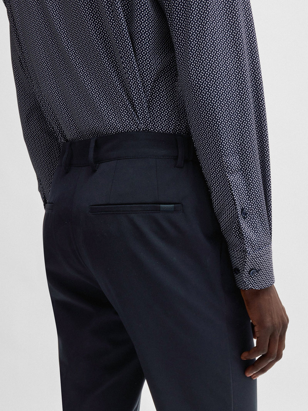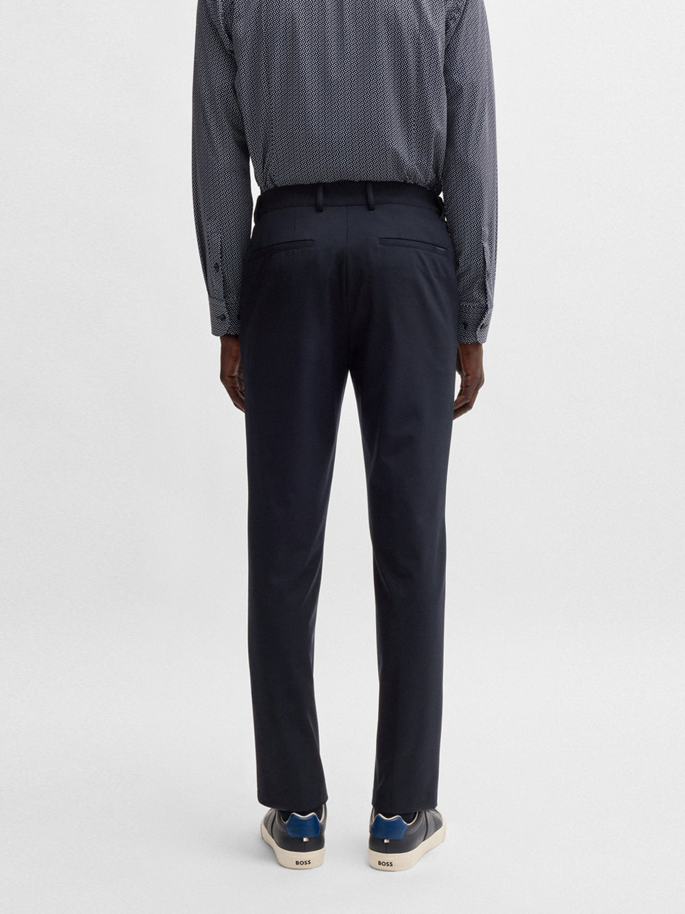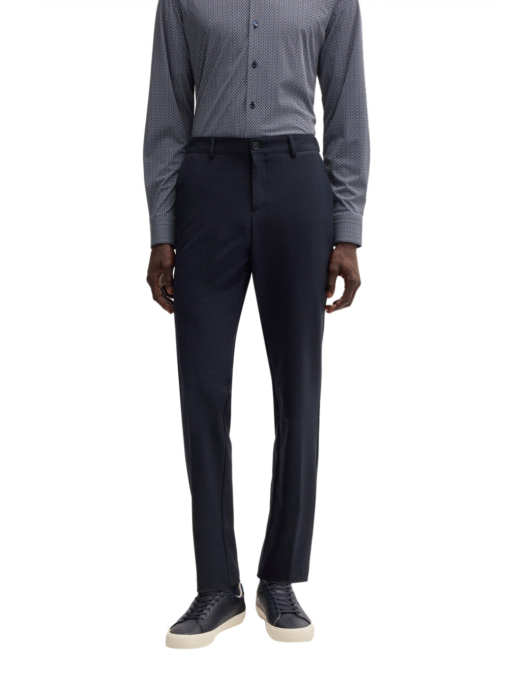 Il Pantalone Chino Hugo Boss Genius da Uomo in colore blu è ideale per l'uomo moderno in cerca di comfort e stile. Realizzato in tessuto fantasia con elasticità a quattro vie, questo pantalone performance dal taglio definito è perfetto per viaggiare comodamente. Realizzato con materiali di alta qualità, 67% poliestere, 29% viscosa, 4% elastan, questo pantalone garantisce comfort e resistenza.