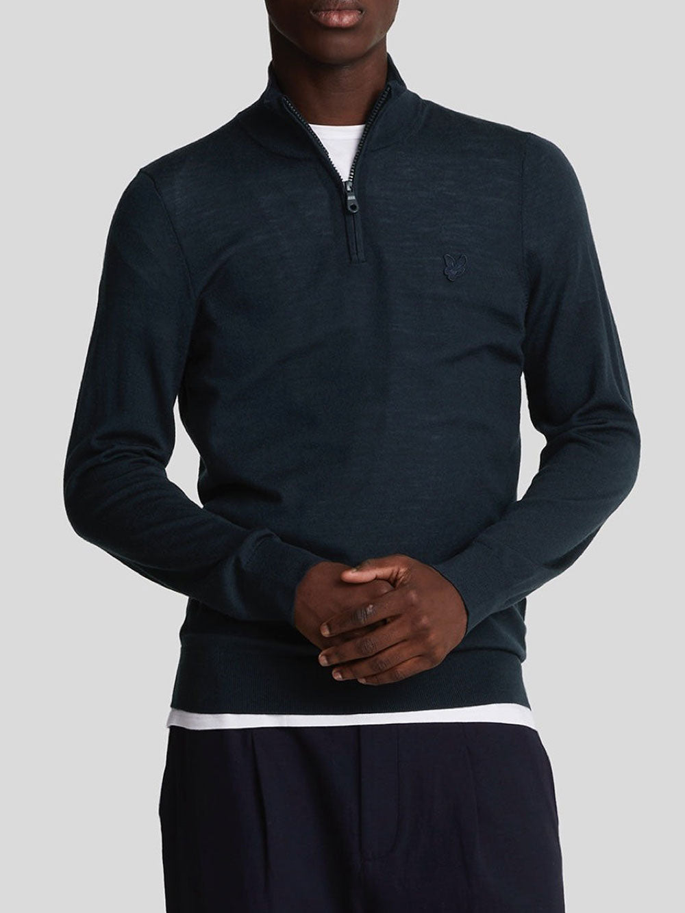 Maglione Lyle & Scott Merino Quarter Zip da Uomo - Blu