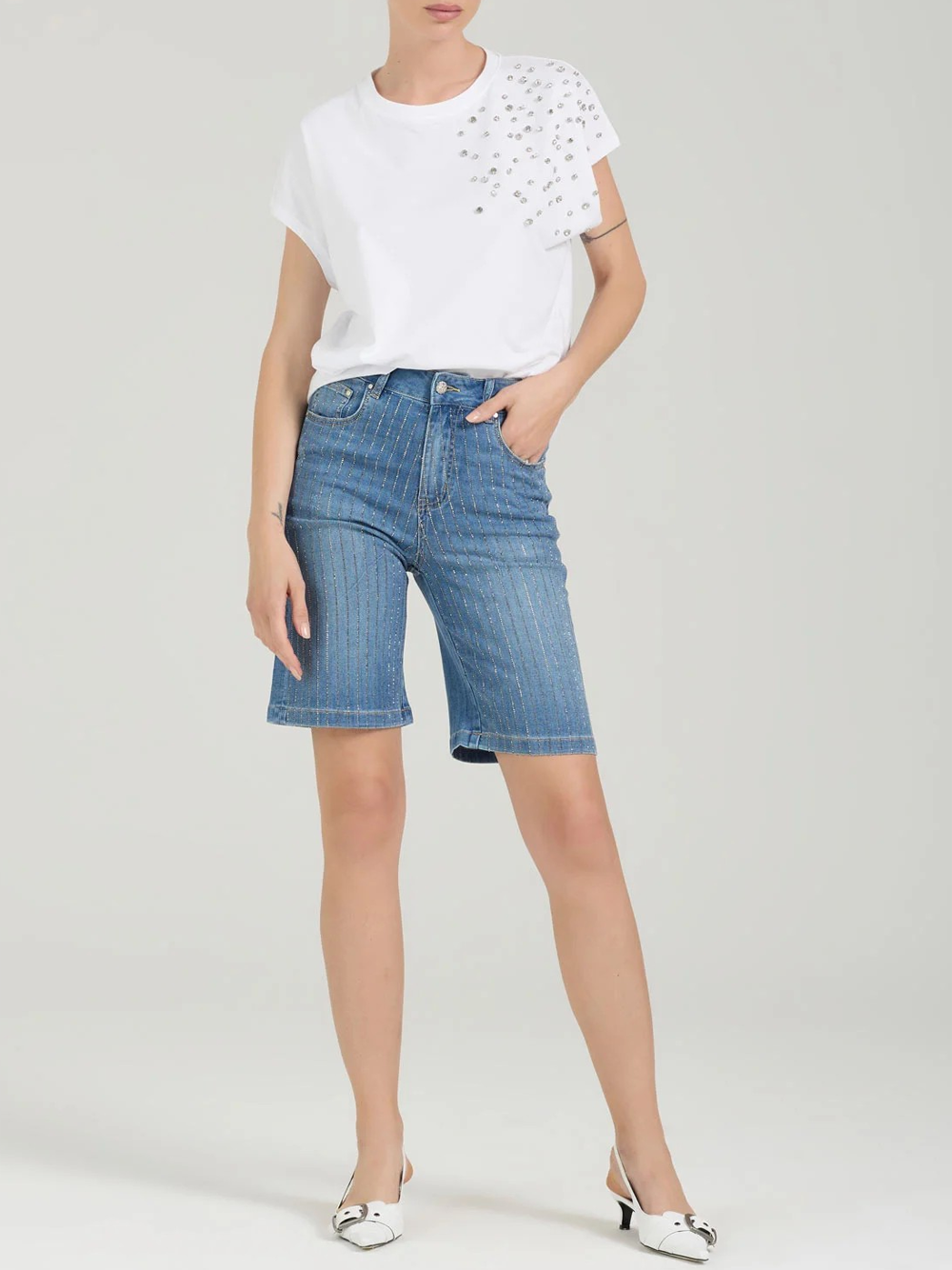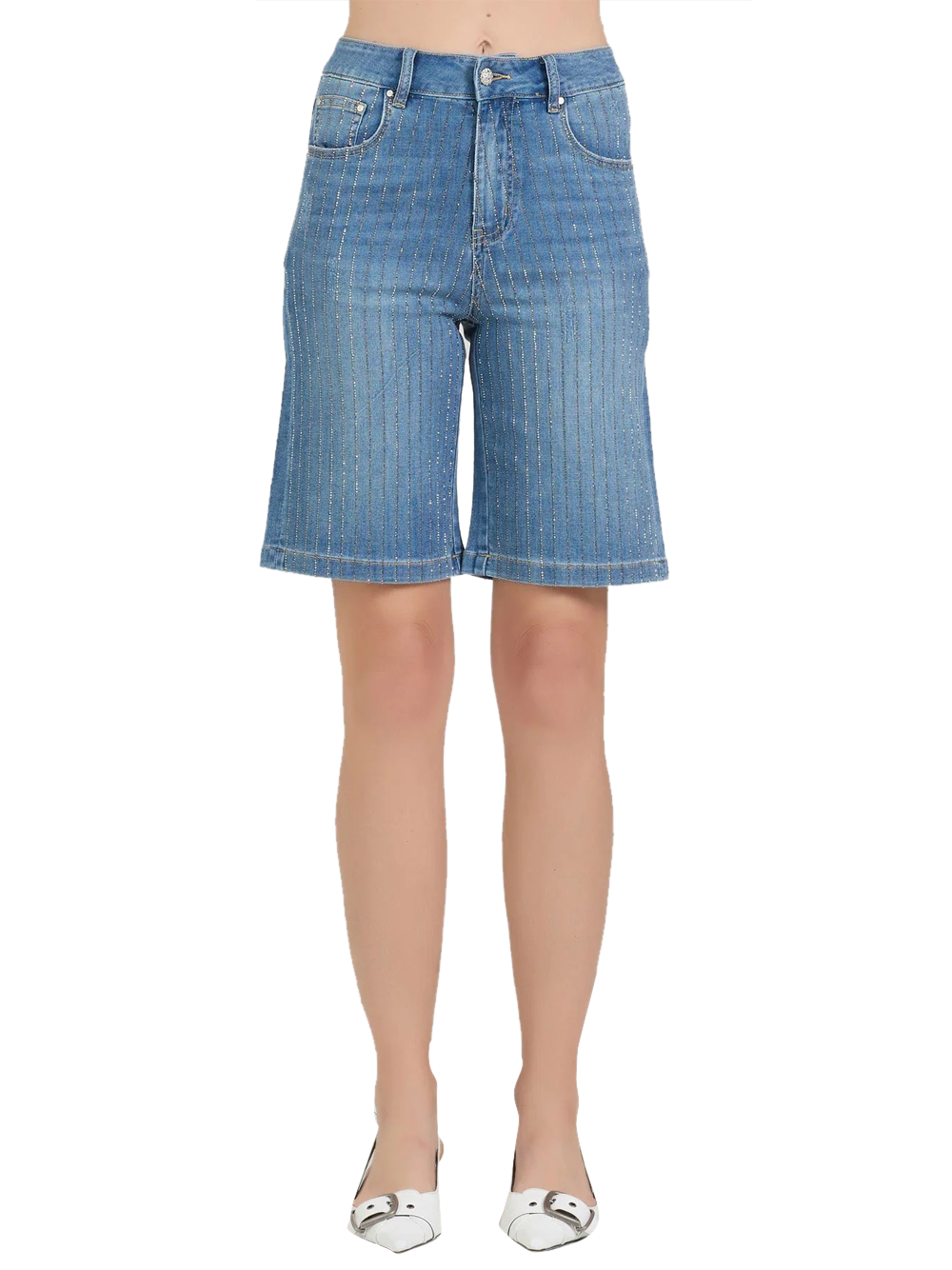 - Bermuda Denim con strisce di strass