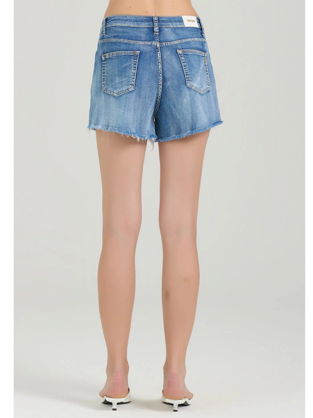Questi shorts sono pensati per garantire una vestibilità comoda e al tempo stesso aderente, grazie alla perfetta combinazione di cotone, poliestere ed elastan. La tonalità del colore denim gioca un ruolo fondamentale nel comunicare uno stile senza tempo che si adatta a diverse occasioni.