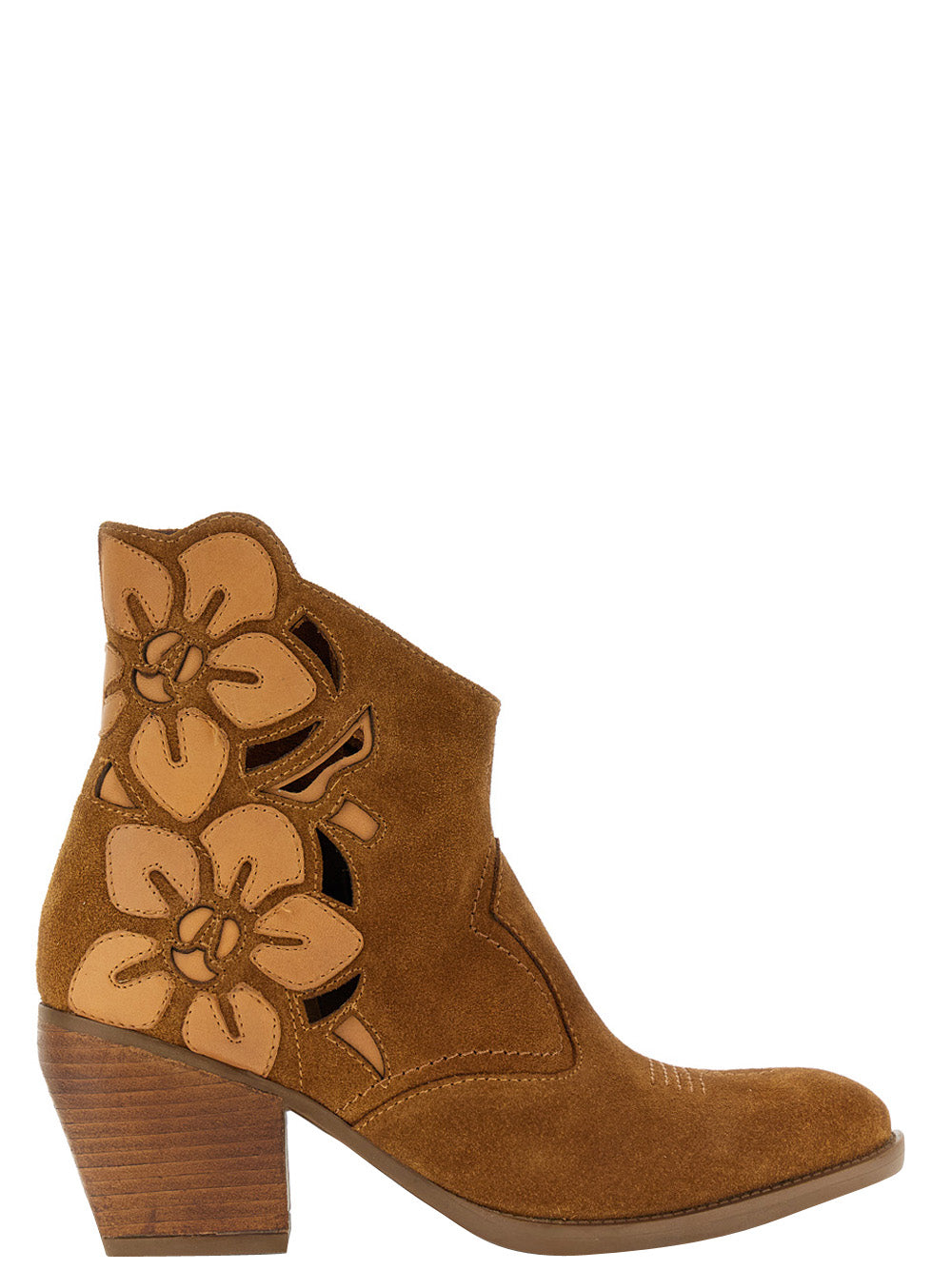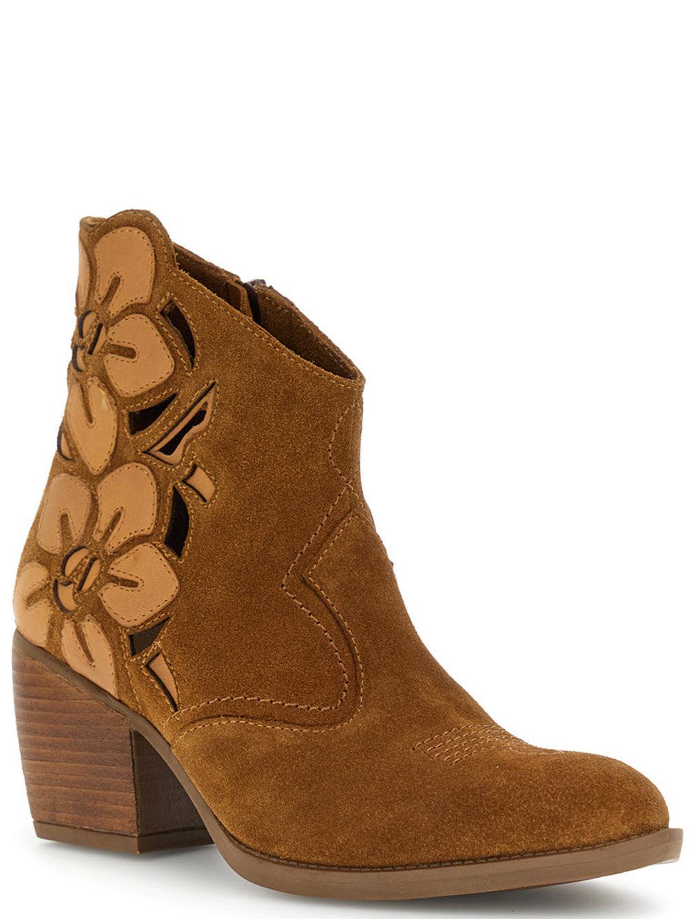 Scopri lo stivaletto in pelle scamosciata di CafèNoir, un tronchetto marrone dallo stile boho chic. Dotato di un ricamo floreale western delicatamente traforato, questo modello da donna combina eleganza e comfort grazie al suo tacco di 7 cm, ideale per chi cerca un look femminile e dinamico.