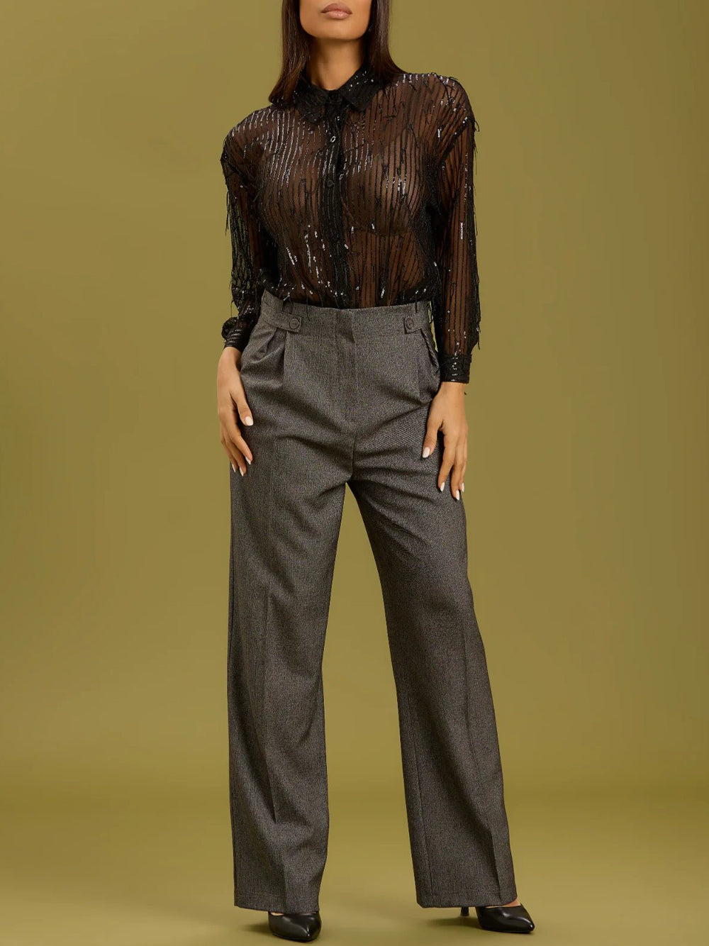 Pantalone Palazzo Con Pences Grisaglia Take Two da Donna - Grigio