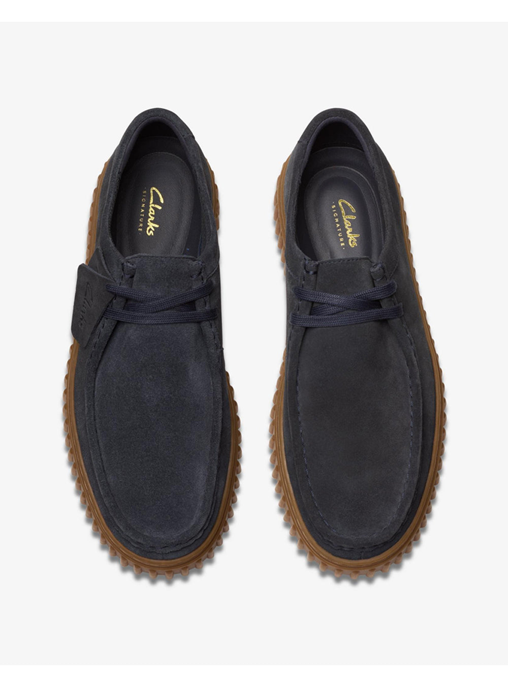 Scarpa Stringata Clarks Marrone da Uomo - Blu sono caratterizzati da una suola scanalata audace, design stringato modellato sull'iconica Wallabee e materiali pregiati come pelle scamosciata color sabbia scuro. Con lacci regolabili, plantare Contour Cushion in pelle sagomato e resistente suola scanalata in TR con inserto in EVA. Ideali per il cliente uomo che cerca comfort e stile casual tradizionale.