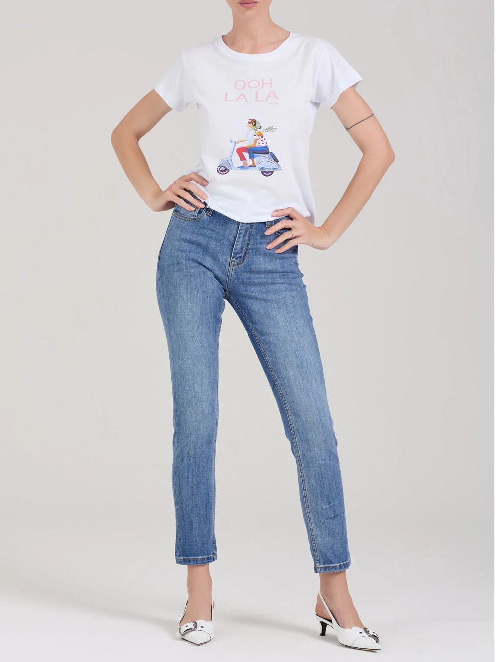 T-Shirt Regular Vespa Take Two da Donna - Bianco