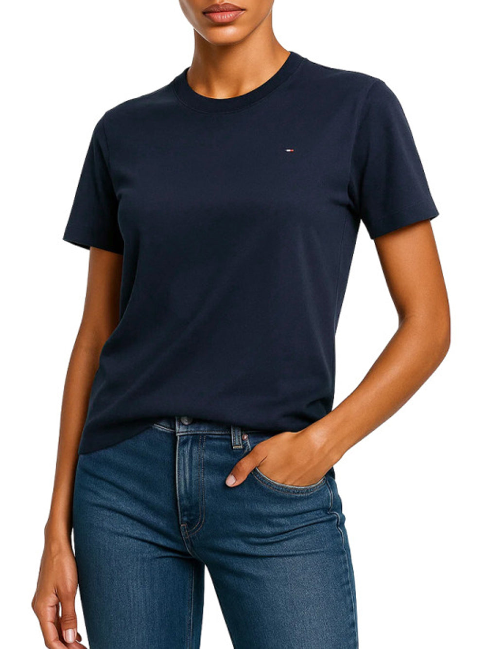 La T-shirt da donna di Tommy Hilfiger, con un taglio morbido e spalle scese, offre un comfort unico, perfetto per chi cerca uno stile casual e alla moda. Caratterizzata da un elegante girocollo e la distintiva bandierina ricamata, è un capo essenziale nel guardaroba femminile, realizzata in cotone rigenerativo per un tocco di lusso e sostenibilità ambientale.
