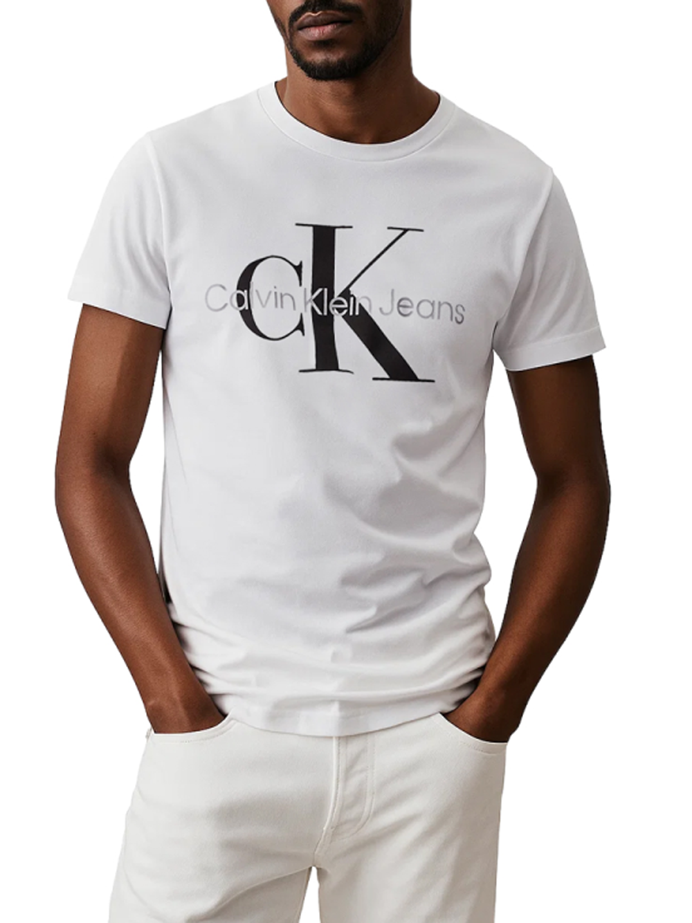T-shirt con monogramma Slim Clavin Klein da Uomo - Bianco