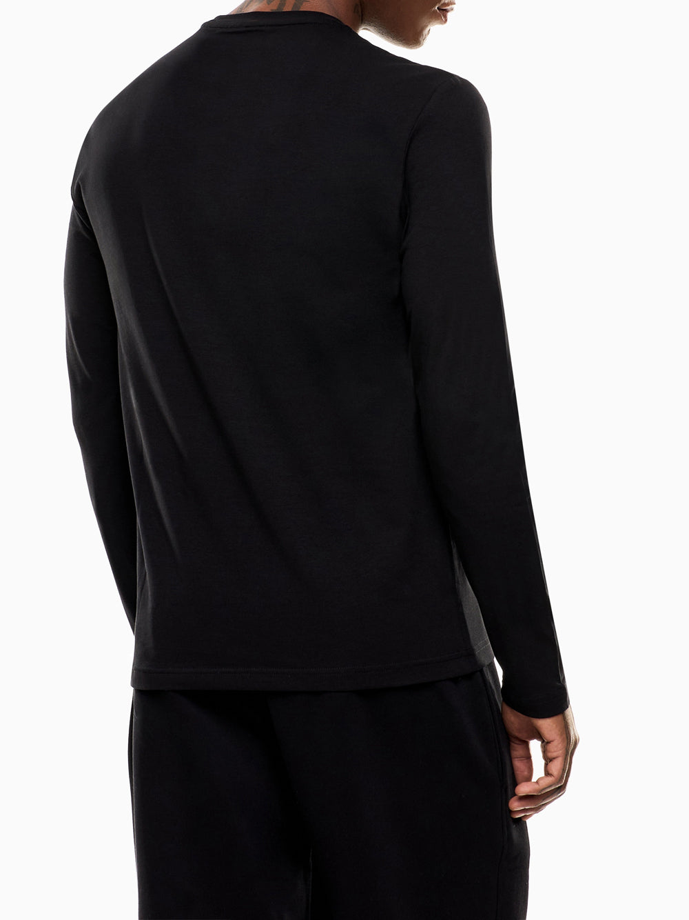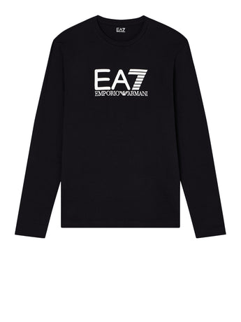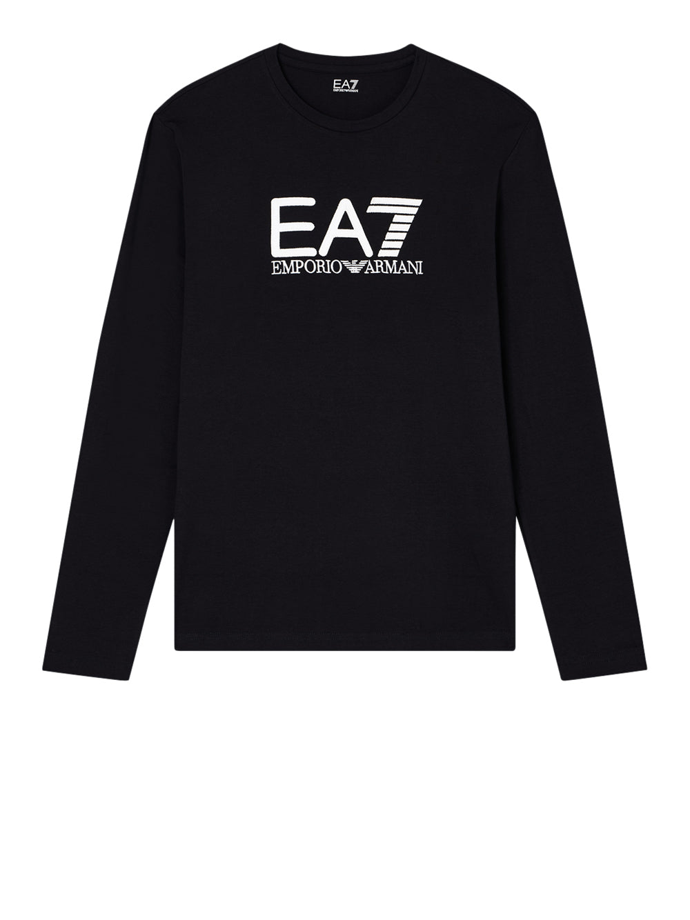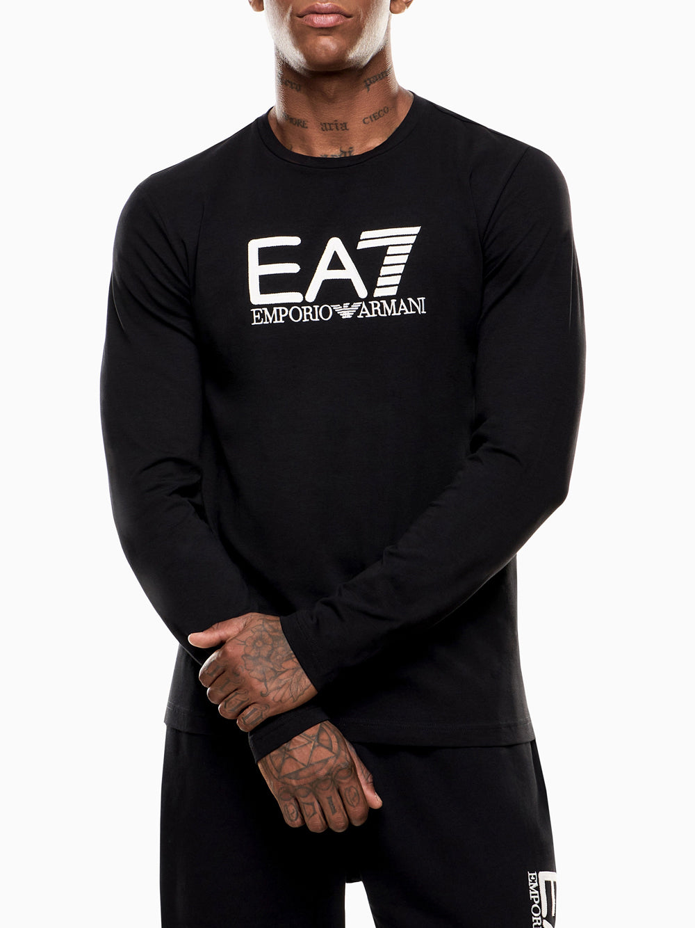 T-shirt Ea7 da Uomo - Nero: morbida e traspirante, questa t-shirt girocollo a maniche lunghe è perfetta per un look discreto ma distintivo, grazie al logo tono su tono sul petto. Realizzata in jersey di cotone, offre massima libertà di movimento e comfort ideale per ogni occasione sportiva o casual. Semplice ma elegante, è l'ideale per completare il tuo outfit.
