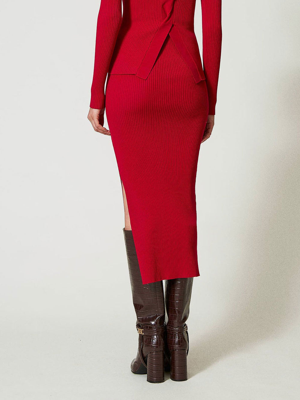 Gonna Longuette Twin Set Con Spacco da Donna - Rosso
