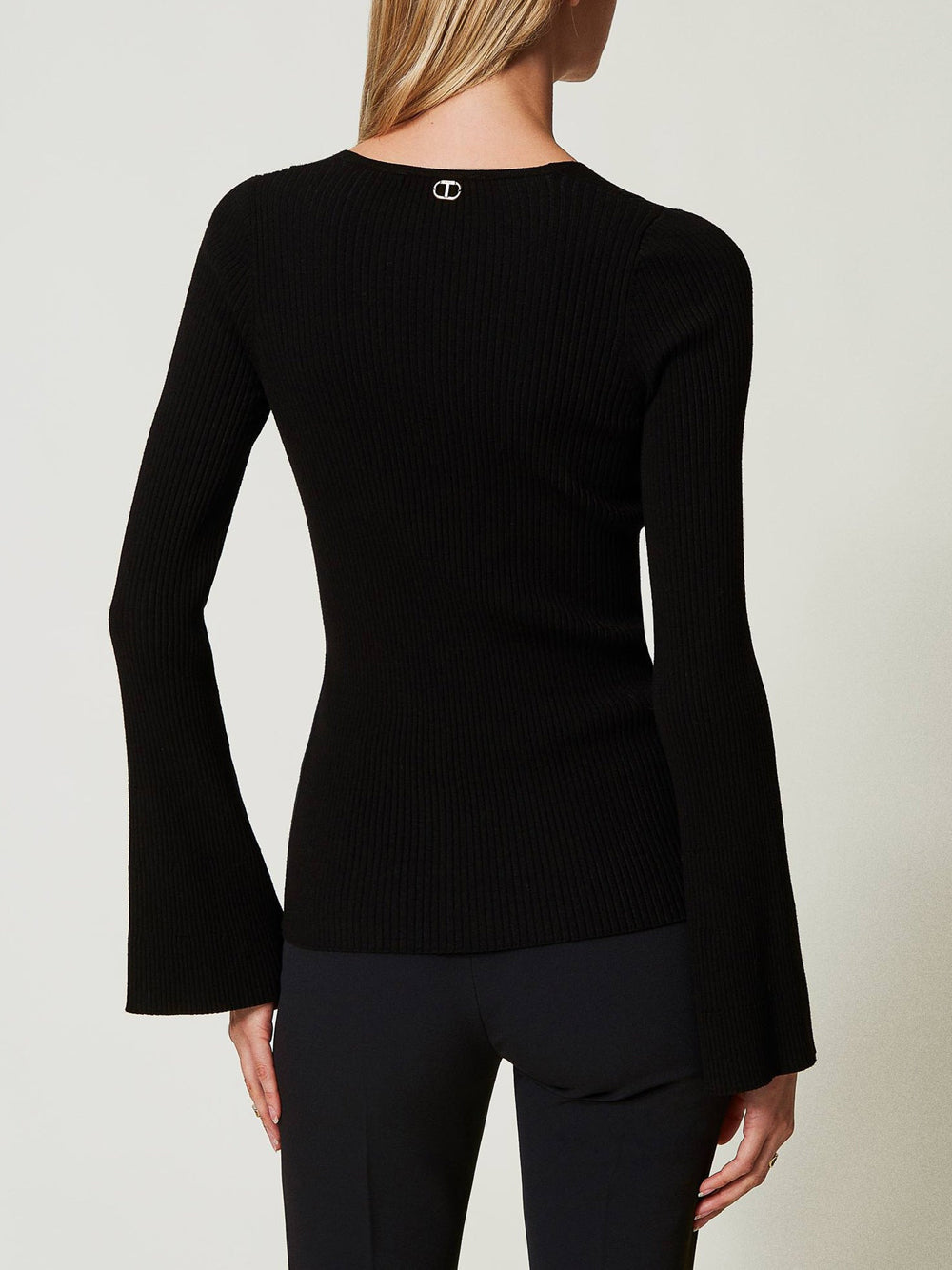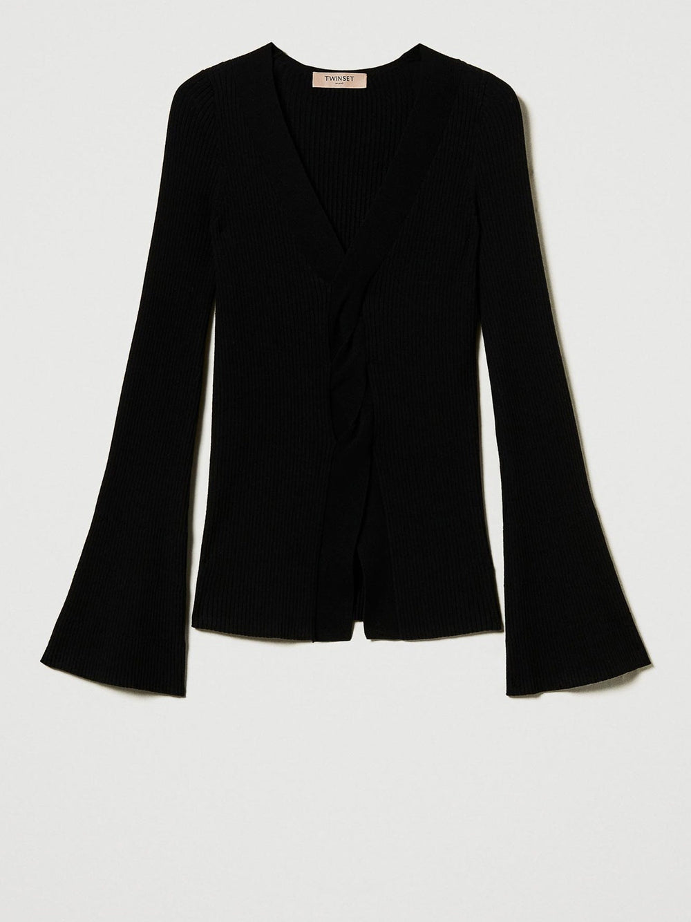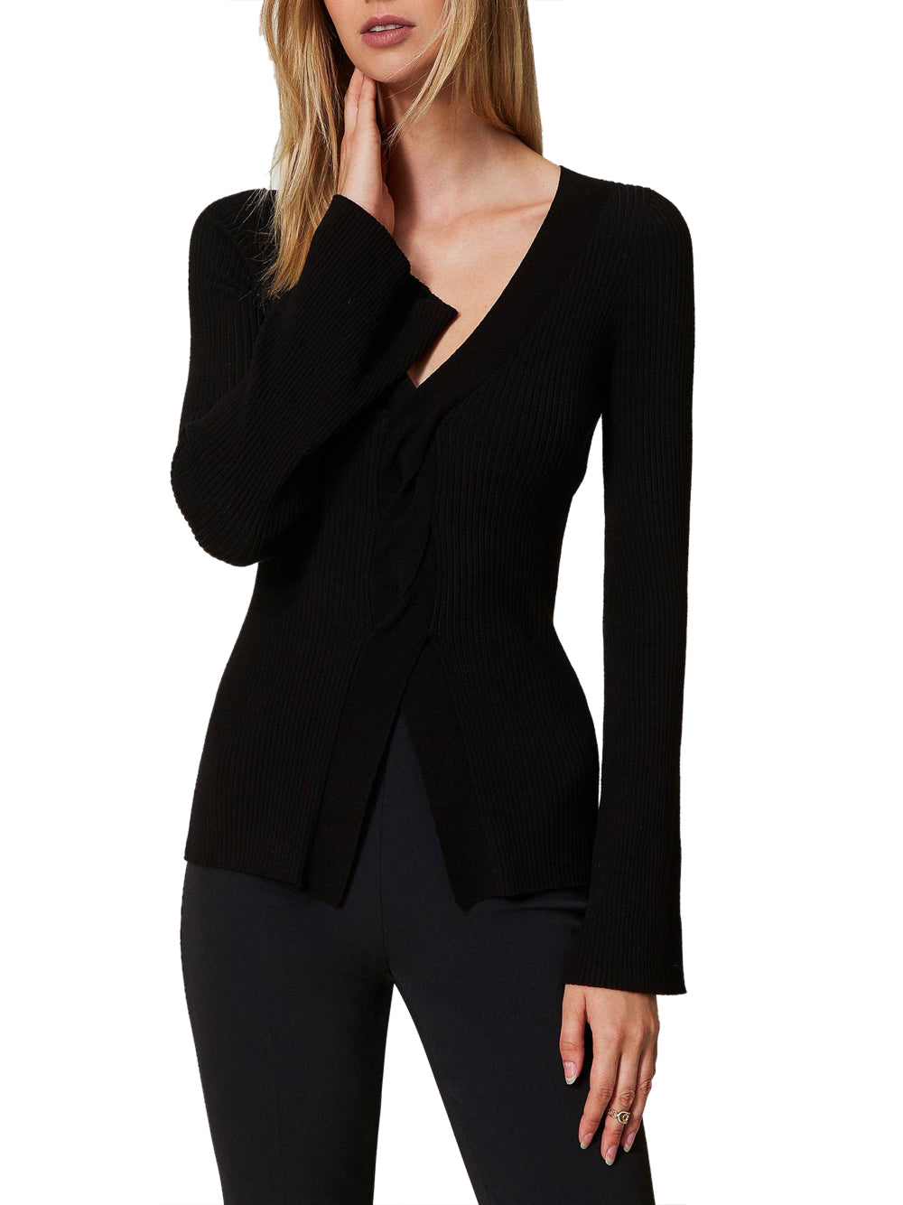 Maglia Twin Set Scollo Incrociato da Donna - Nero