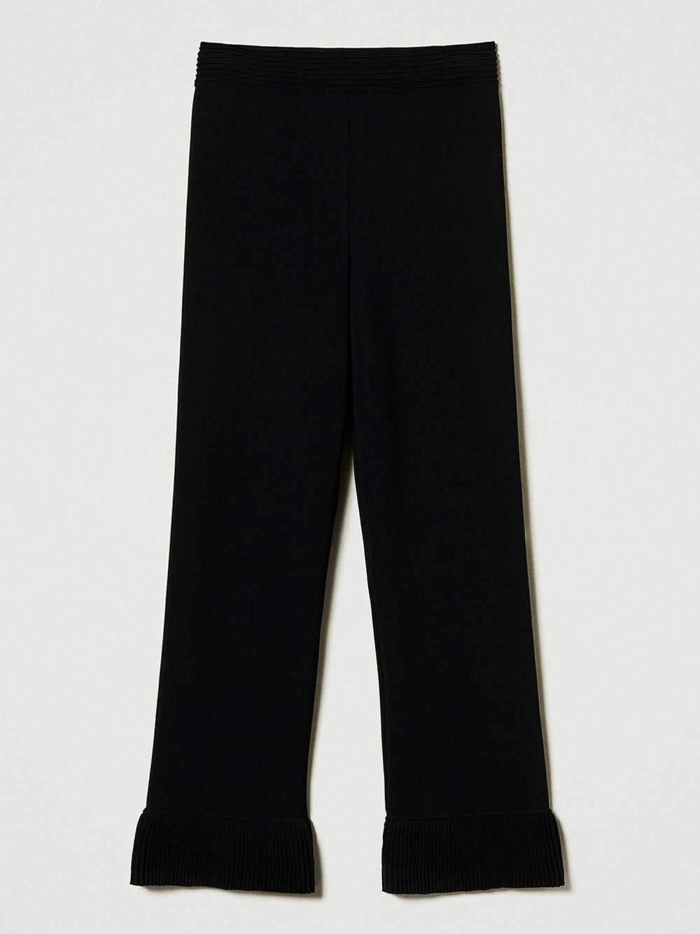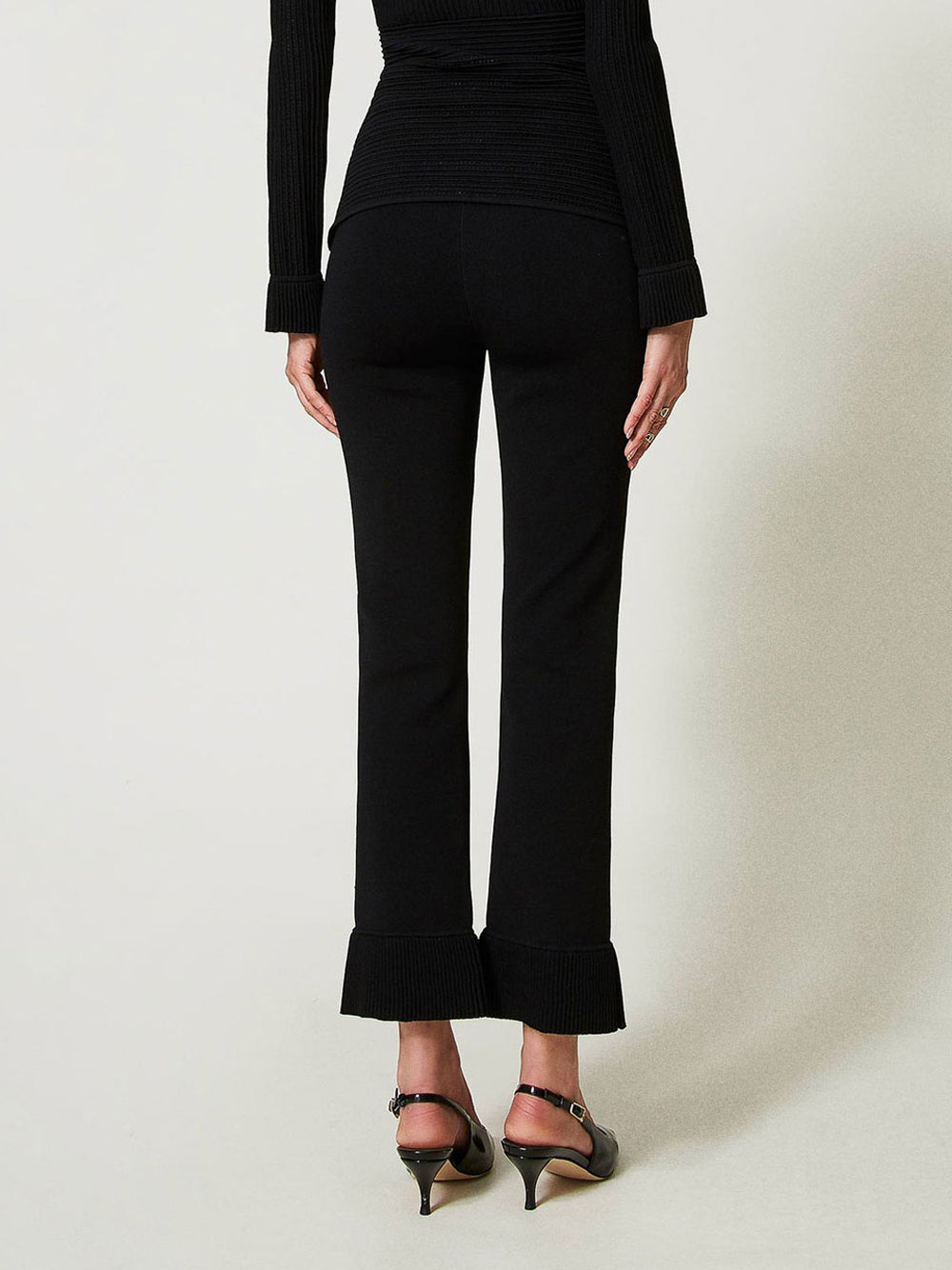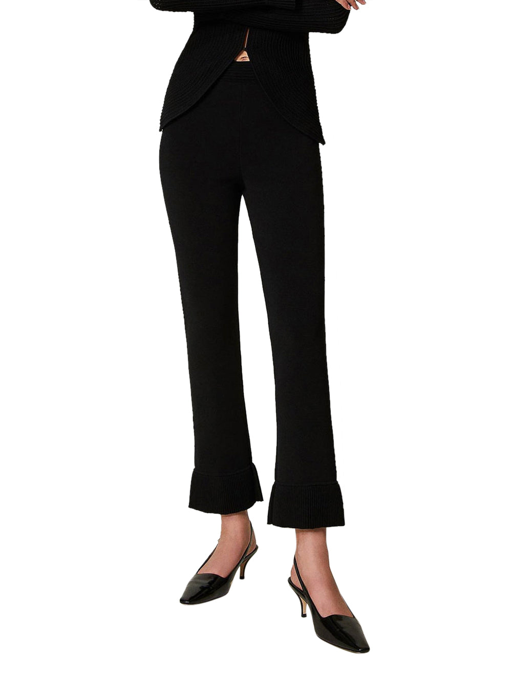 Rendi unico il tuo look con i Pantaloni Twin Set Cropped da Donna in nero. Realizzati in misto viscosa stretch, con lavorazione a tubetti in vita e linea flare, questi pantaloni sono perfetti per un outfit chic e alla moda. Comodi da indossare, sono ideali per una donna che ama distinguersi con stile. Da abbinare con una blusa setosa e un paio di décolleté per un look elegante e raffinato.