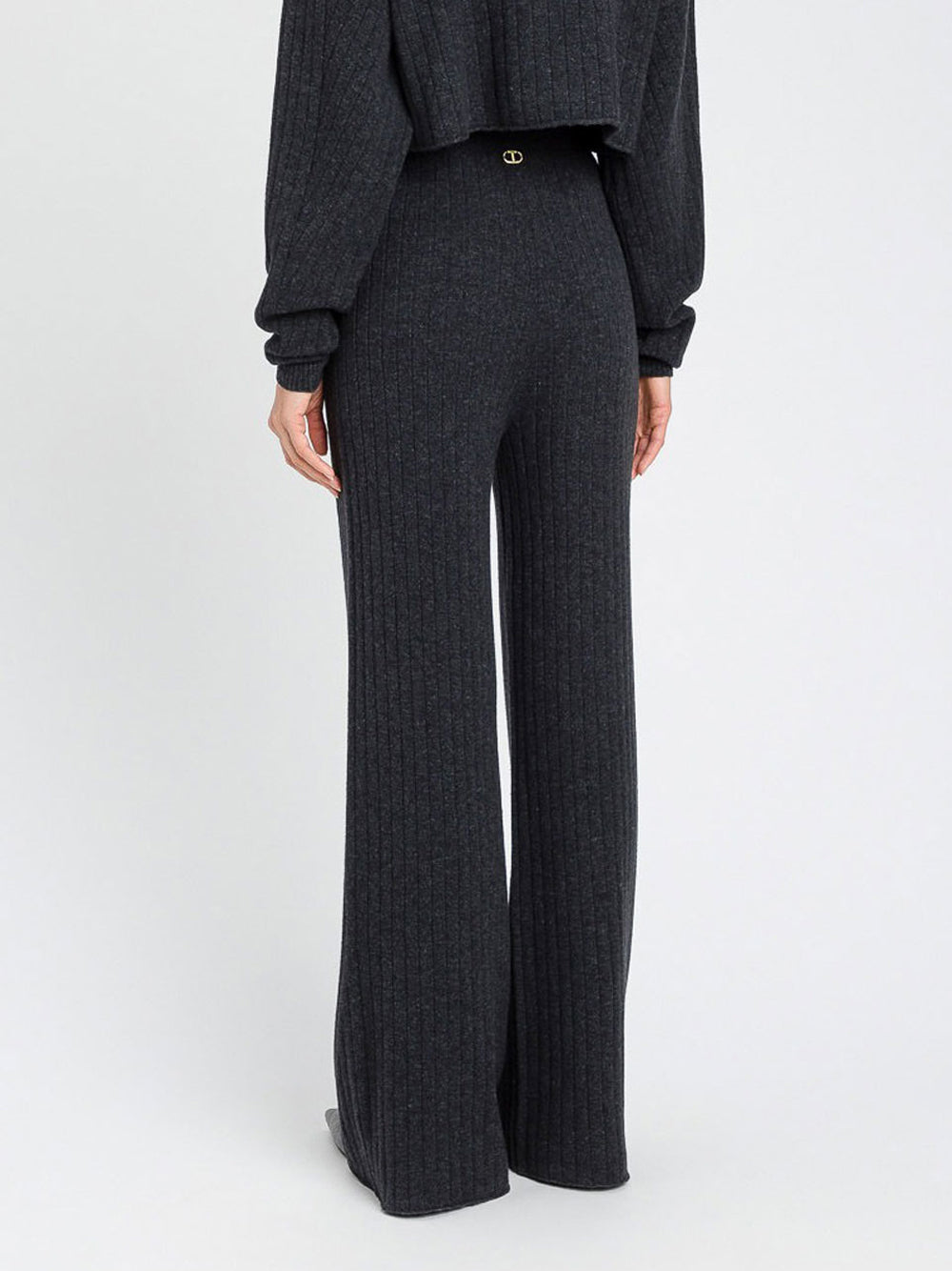 I pantaloni zampa Twin Set da donna in grigio sono realizzati in morbido misto lana. Caratterizzati da una texture a coste, sono aderenti in vita con elastico coperto e gamba a zampa. Composizione: 73% lana, 26% poliammide, 1% elastan.
