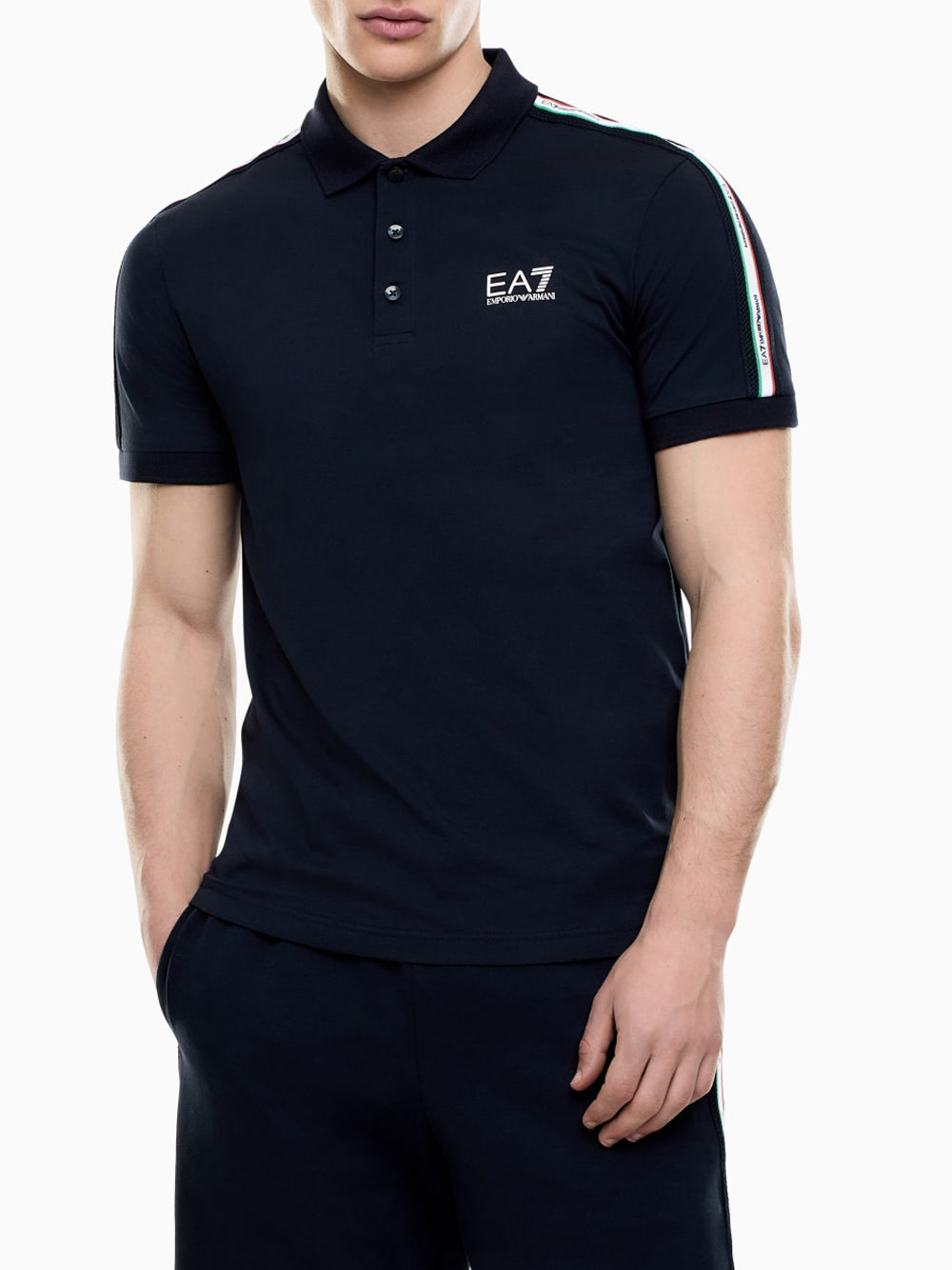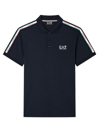 Scopri la polo Italian Spirit Emporio Armani EA7, un capo essenziale e contemporaneo per l'uomo che ama unire eleganza e comfort. Realizzata in morbido jersey di cotone, questa polo presenta un taglio slim fit ed è impreziosita da un esclusivo dettaglio con logo tricolore e scritta "Italia" oversize sul retro, ideale per un look distintivo e raffinato.