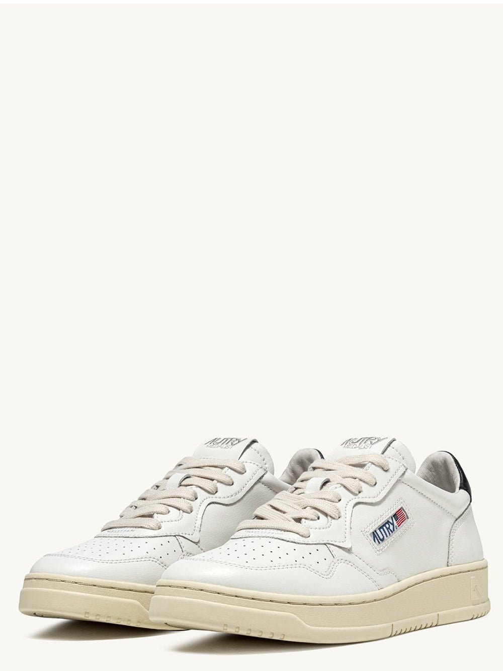 - Tomaia in pelle bianca con dettaglio nero sul tallone