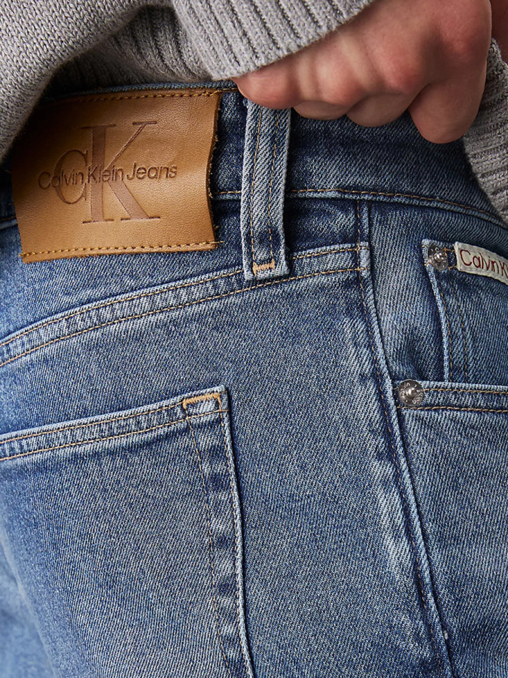 - Cinque-tasche classiche con rivetti e badge distintivi
