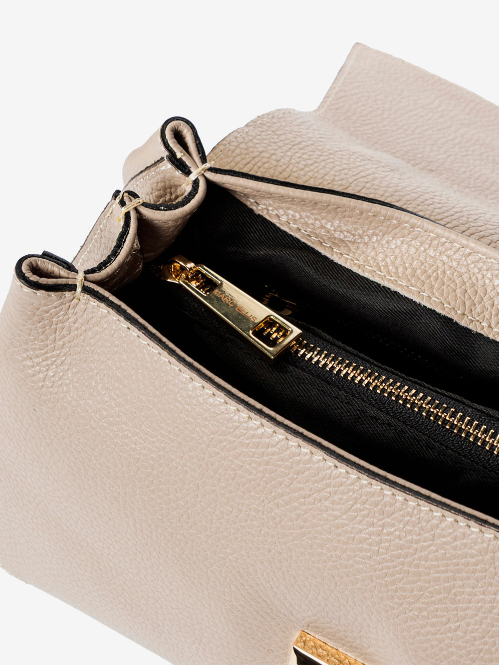 - Logo in metallo dorato su patta frontale
