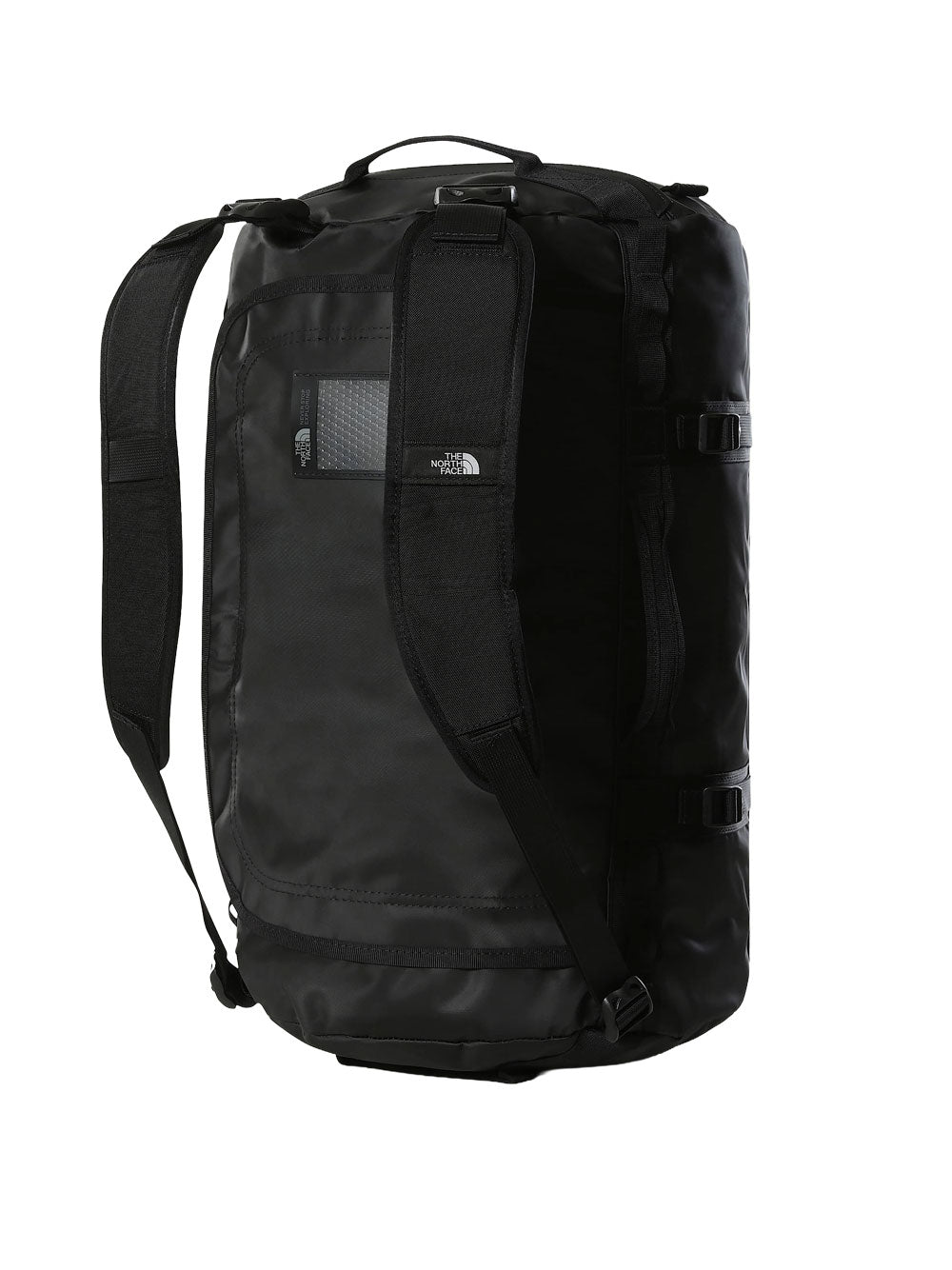 Il Borsone Base Camp - S Tnf Black di The North Face è perfetto per viaggiatori ed esploratori che necessitano di uno spazio ampio e resistente per i propri effetti personali. Realizzato in materiali riciclati impermeabili, presenta spallacci regolabili, manici imbottiti e numerose tasche per una maggiore organizzazione. Con una capacità di 50 litri e dimensioni di 33,03 cm x 53,34 cm x 33,02 cm, è l'alleato ideale per le avventure sia in montagna che in città.