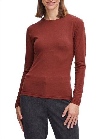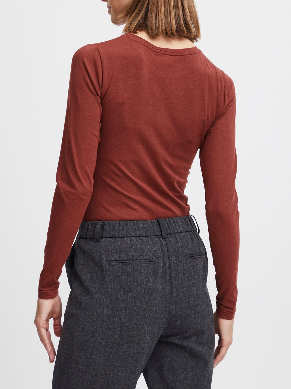 La maglia b.young Bypamila da donna in marrone è perfetta per chi cerca un capo versatile e di tendenza. Con vestibilità aderente e lunghezza ai fianchi, questa maglietta è realizzata al 50% cotone, 44% modal e 6% elastan per un comfort ottimale. Con il pratico girocollo, la Bypamila LS Tshirt di b.young è un must-have per ogni guardaroba femminile.