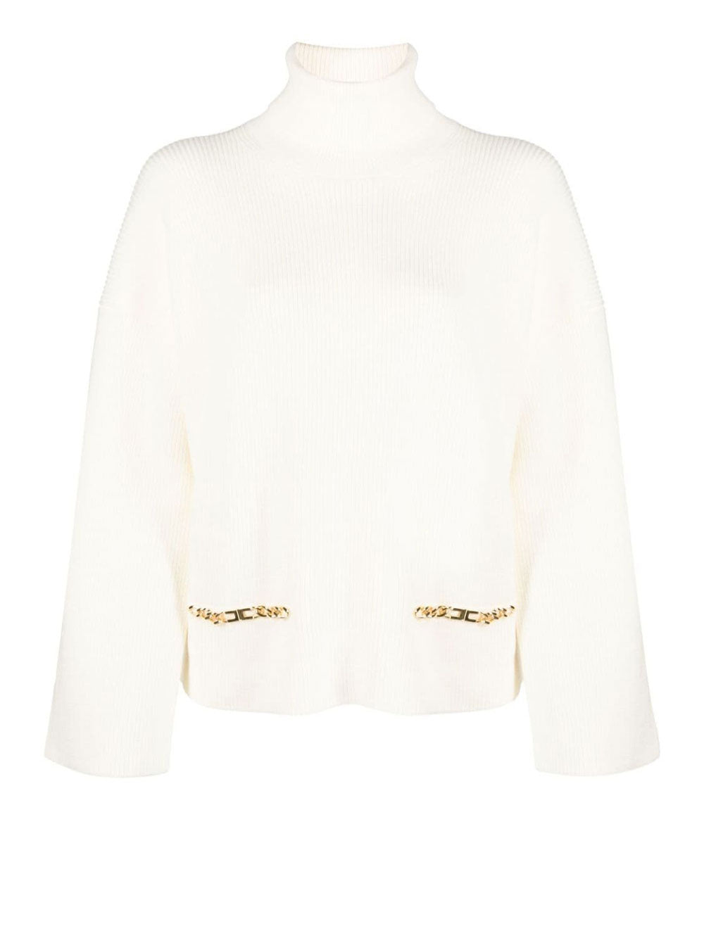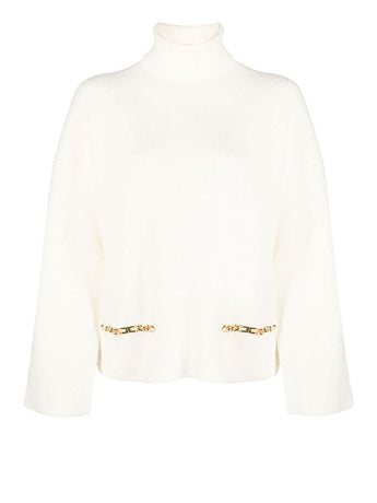 Eleva il tuo stile con il Pullover Elisabetta Franchi da Donna in Avorio Modello MK87M36E2 193. Questo dolcevita oversize è realizzato in pregiata viscosa con una lavorazione a costine, garantendo una vestibilità confortevole e alla moda. L'applicazione di due morsetti logati in metallo dorato sulle tasche aggiunge un tocco di lusso e raffinatezza al design. Con manica e orlo ampi e senza polsini, questo pullover presenta un look elegante e moderno. Il colore Avorio/Burro è perfetto per creare outfit versatili e di tendenza. Composto al 51% da viscosa, 31% poliestere e 18% poliammide, questo pullover unisce stile e qualità. Aggiungi un capo d'abbigliamento di classe al tuo guardaroba con il Pullover Elisabetta Franchi da Donna.
