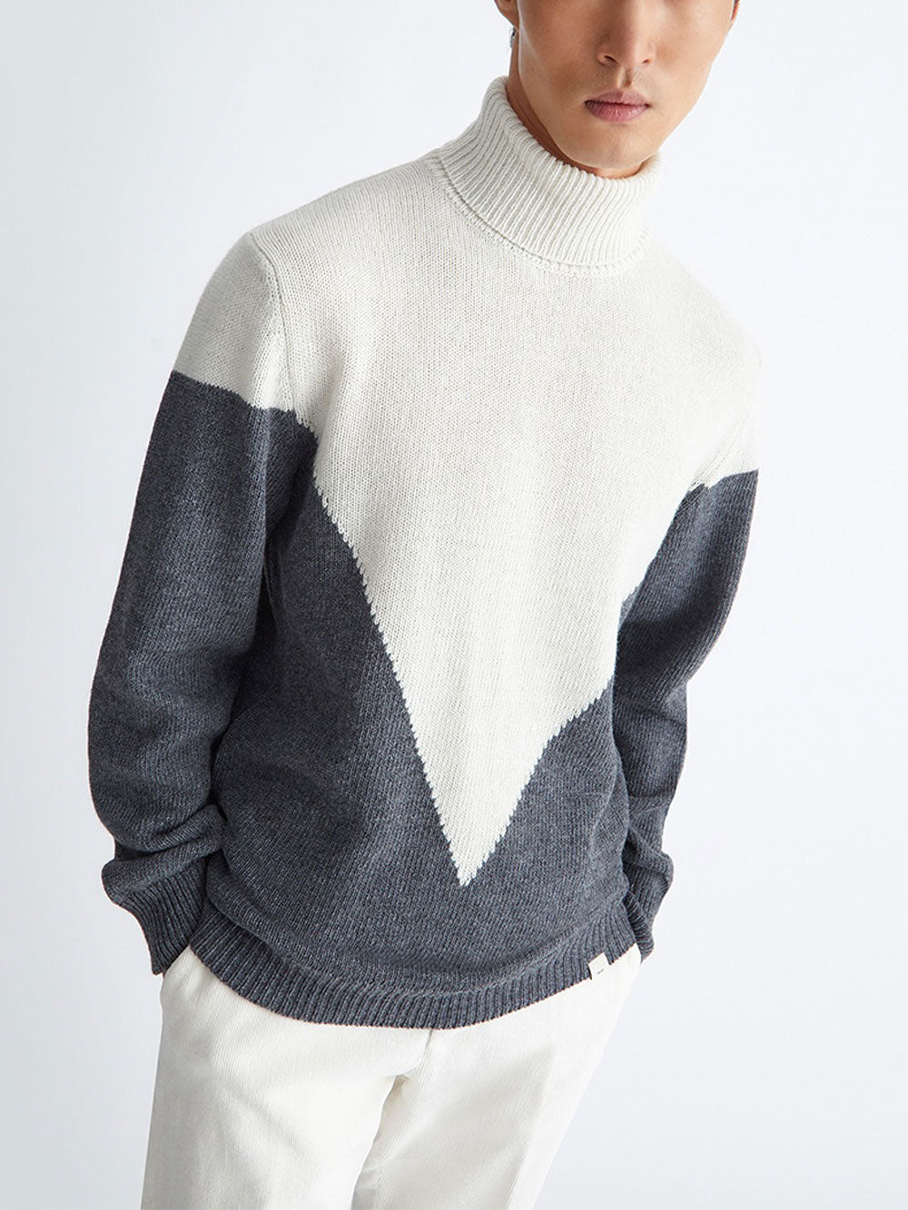 Pullover Liu Jo Tipblock da Uomo: un capo in misto lana di alta qualità, caratterizzato da un collo con risvolto, orlo e polsini a costine per un tocco di eleganza. Il logo Liu Jo è discretamente posizionato in basso a sinistra. Questo pullover è realizzato in taglio regular fit, offrendo comfort e stile. La composizione di materiali comprende il 70% di lana, il 25% di nylon e il 5% di altre fibre, garantendo un capo di qualità superiore.