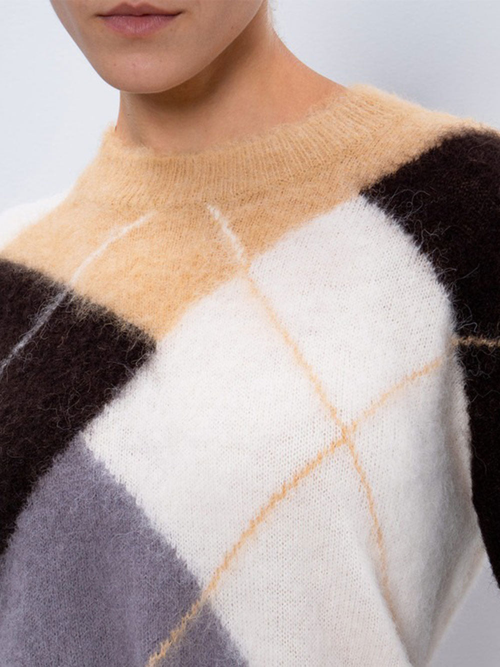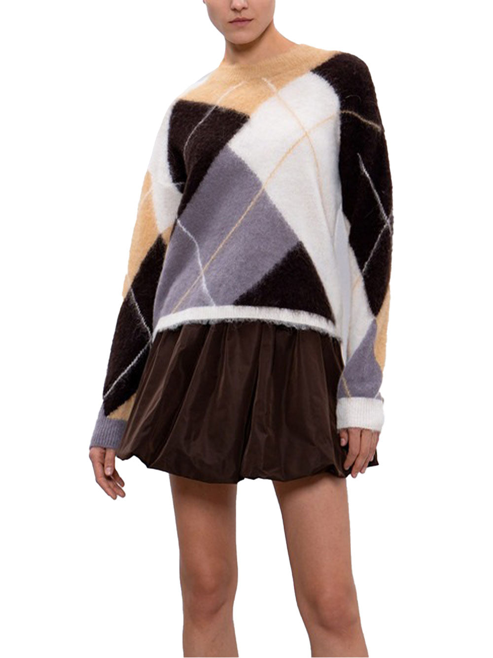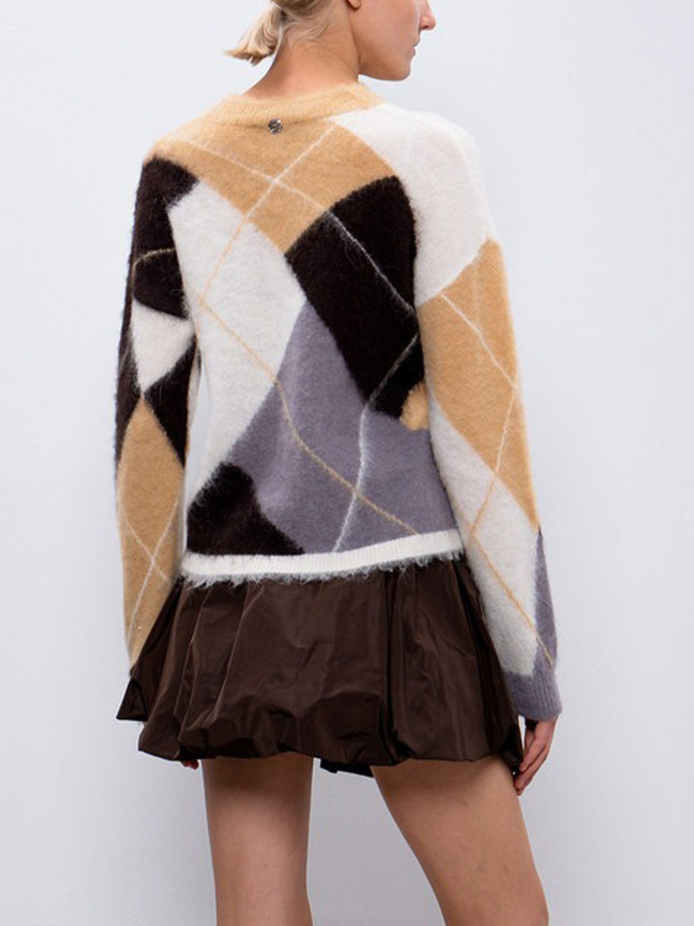 La maglia da donna Actitude grigia è un capo di alta qualità con un design elegante e sofisticato. Realizzata in misto lana jacquard a disegno maxi argyle, questa maglia presenta una lavorazione garzata che la rende morbida e vellutata al tatto. Il modello girocollo con profili rifiniti a costine, maniche lunghe e logo in metallo sul retro la rendono un capo unico e di tendenza. Ideale per una donna che cerca un capo confortevole e alla moda.