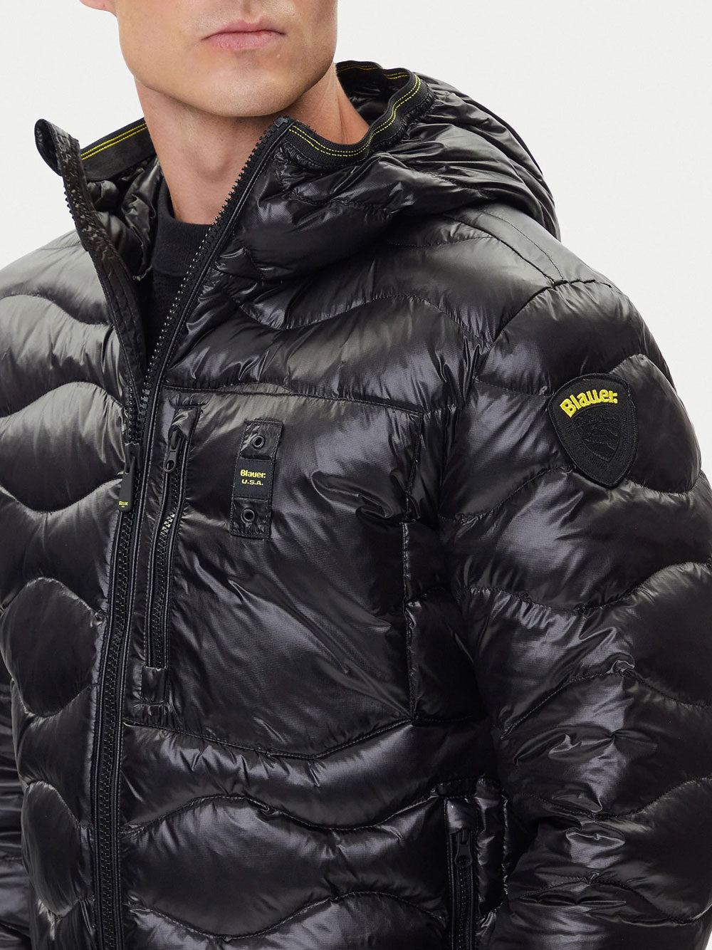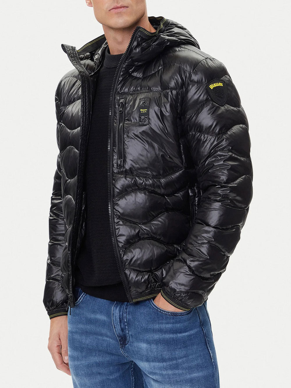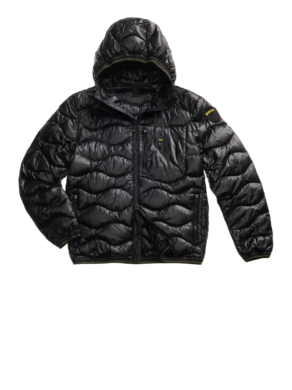 Il Giubbino Uomo Wave Nero di Blauer è un capo versatile e moderno, pensato per l'uomo che non rinuncia allo stile e al comfort. Caratterizzato da un design trapuntato a onde orizzontali, offre funzionalità con taschino sul petto e cappuccio fisso. Imbottito con piuma 90/10 gr.165 e foderato in tono. Ideale per look urbani o casual. Colore nero facile da abbinare. Con cappuccio.
